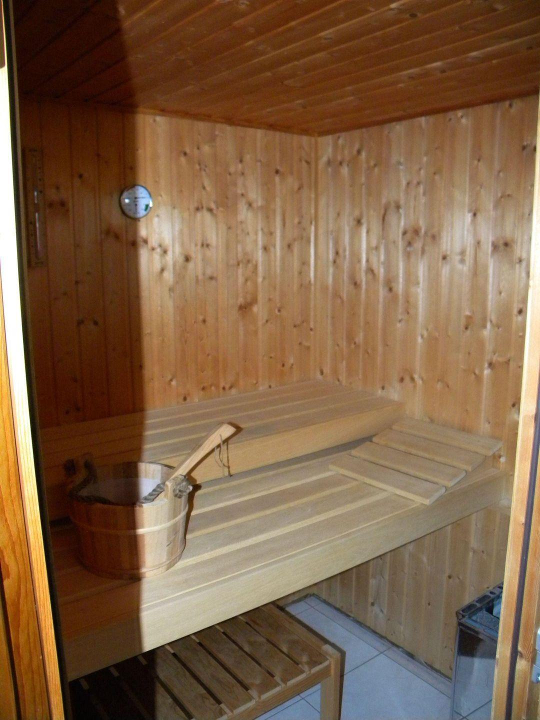 Im 720 qm großen Garten befindet sich ein Holzhaus mit Gartenmöbeln, Liegen und Grill. Davor eine Terrasse mit Strandkorb.