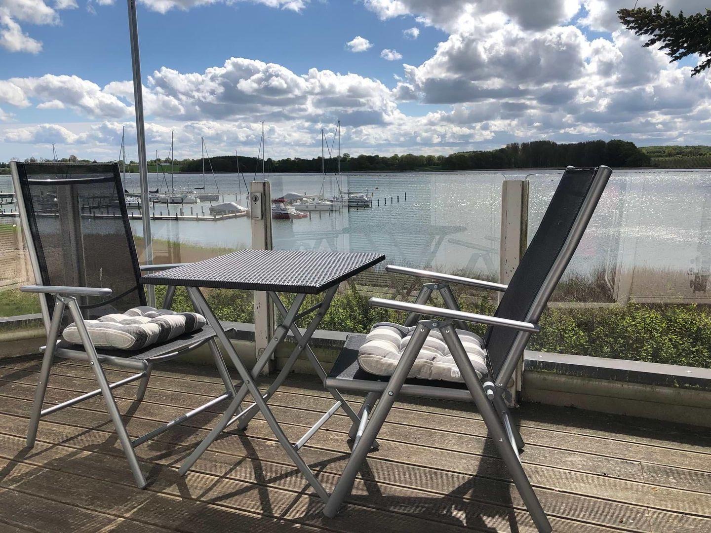 Vom Wohnzimmer, vom Balkon und aus dem Garten geniessen Sie einen phantastischen Blick auf den "Ostsee-Fjord Schlei" und den Sportboothafen Lindaunis.