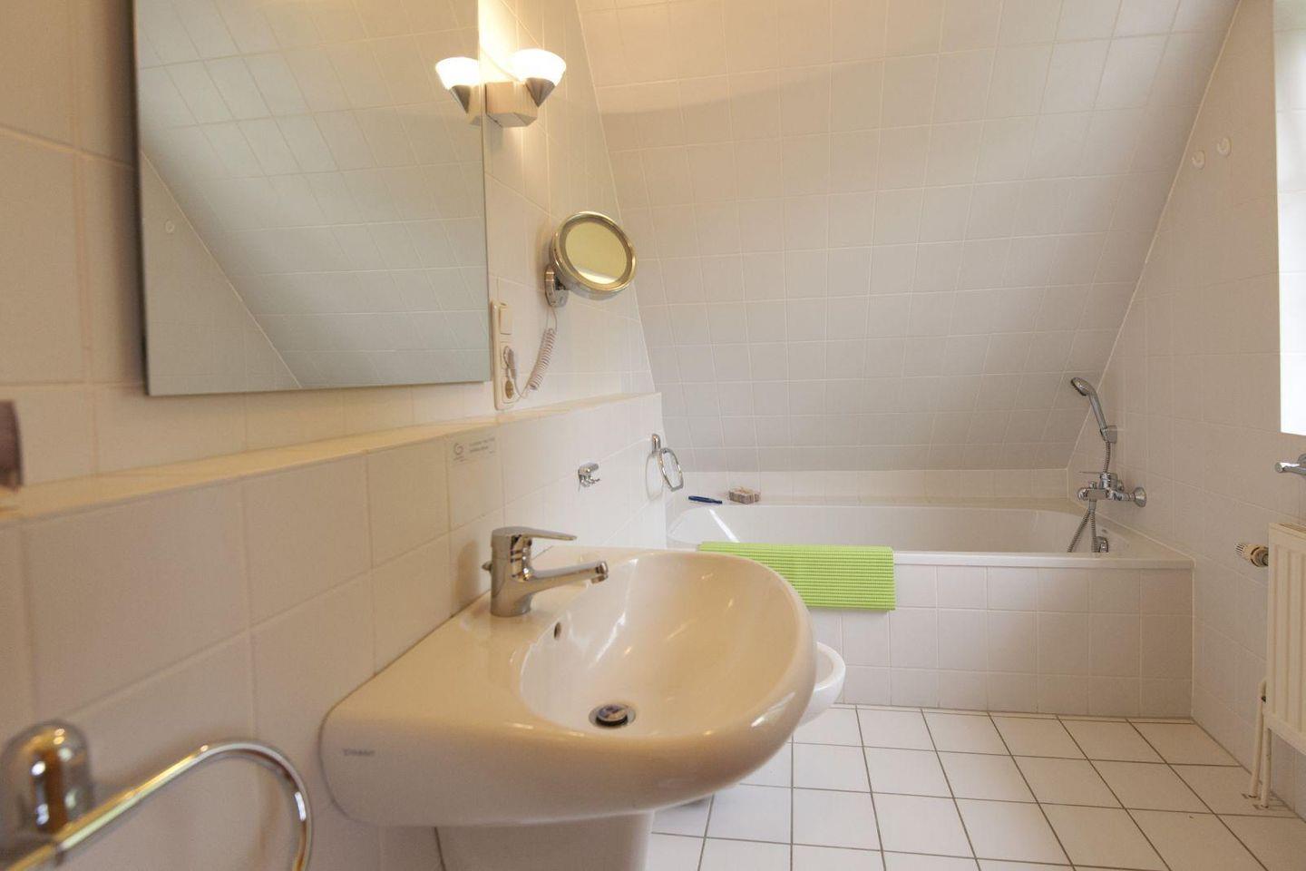 Von der Terrasse aus genießen Sie den Blick auf die Schlei. Im Obergeschoss sind die Schlafräume und ein Bad mit Wanne und Bidet.