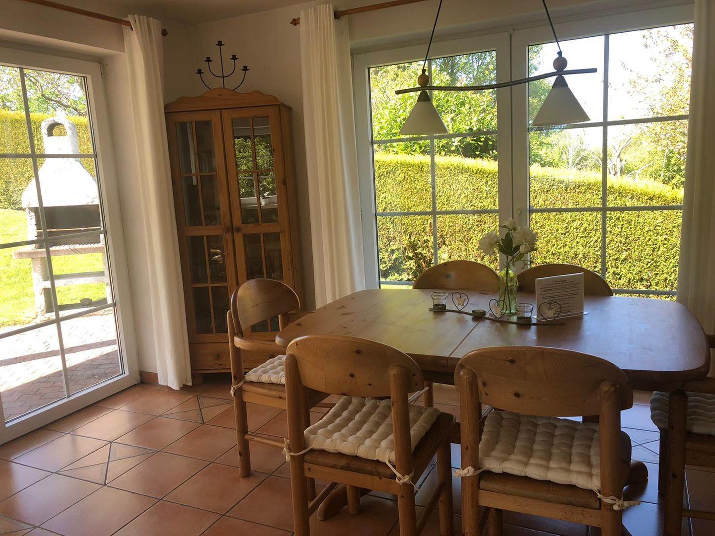 Exklusives Ferienhaus direkt gegenüber dem Yachthafen Lindaunis, auf einem nahe der Schlei gelegenem Hanggrundstück in einer kleinen Anlage mit Ferienhäusern, nach zwei Seiten Schleiblick vom Obergeschoss. Dieses gemütliche Domizil bietet neben Sauna, Kaminofen auch zwei Schlafräume sowie zwei Bäder und einen offenen Wohn-Essbereich mit direktem Garten - und Terrassenzugang. Das eingezäuntes Grundstück ist ideal für den Urlaub mit Hund.