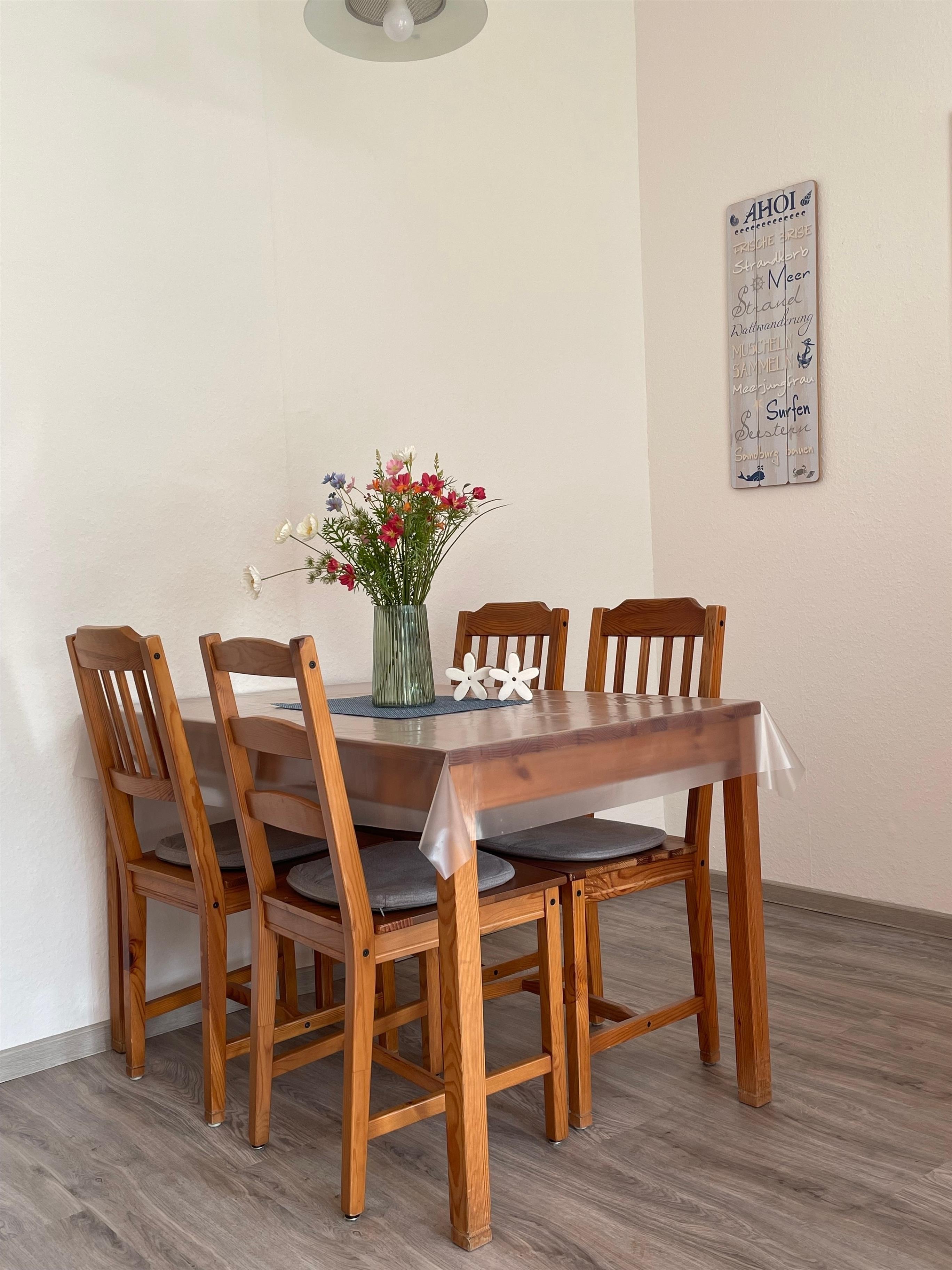 Erdgeschosswohnung, 55 qm - für 2 Personen - mit Terrasse, von der der Gast den Blick auf die Schlei genießen kann. 1 Schlafraum (2 Einzelbetten), Wohnraum mit SAT-TV, Küche mit Geschirrspüler, Dusche/WC. Behindertenfreundlich.