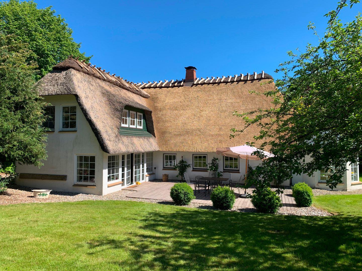 Das reetgedeckte Ferienhaus befindet sich auf einem imposanten Grundstück und bietet Ihnen eine malerische Umgebung, die Sie in eine Welt der Ruhe und Natur entführt. Das Grundstück erstreckt sich über eine Fläche von 5.000 Quadratmetern und lädt Sie ein, die großzügige Wohnfläche von 200 qm in vollen Zügen zu nutzen.