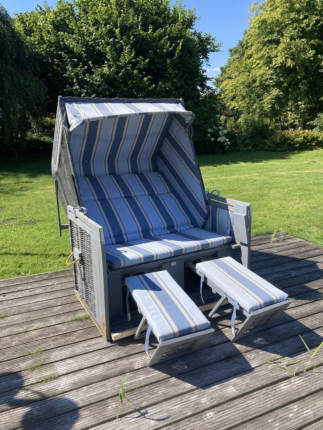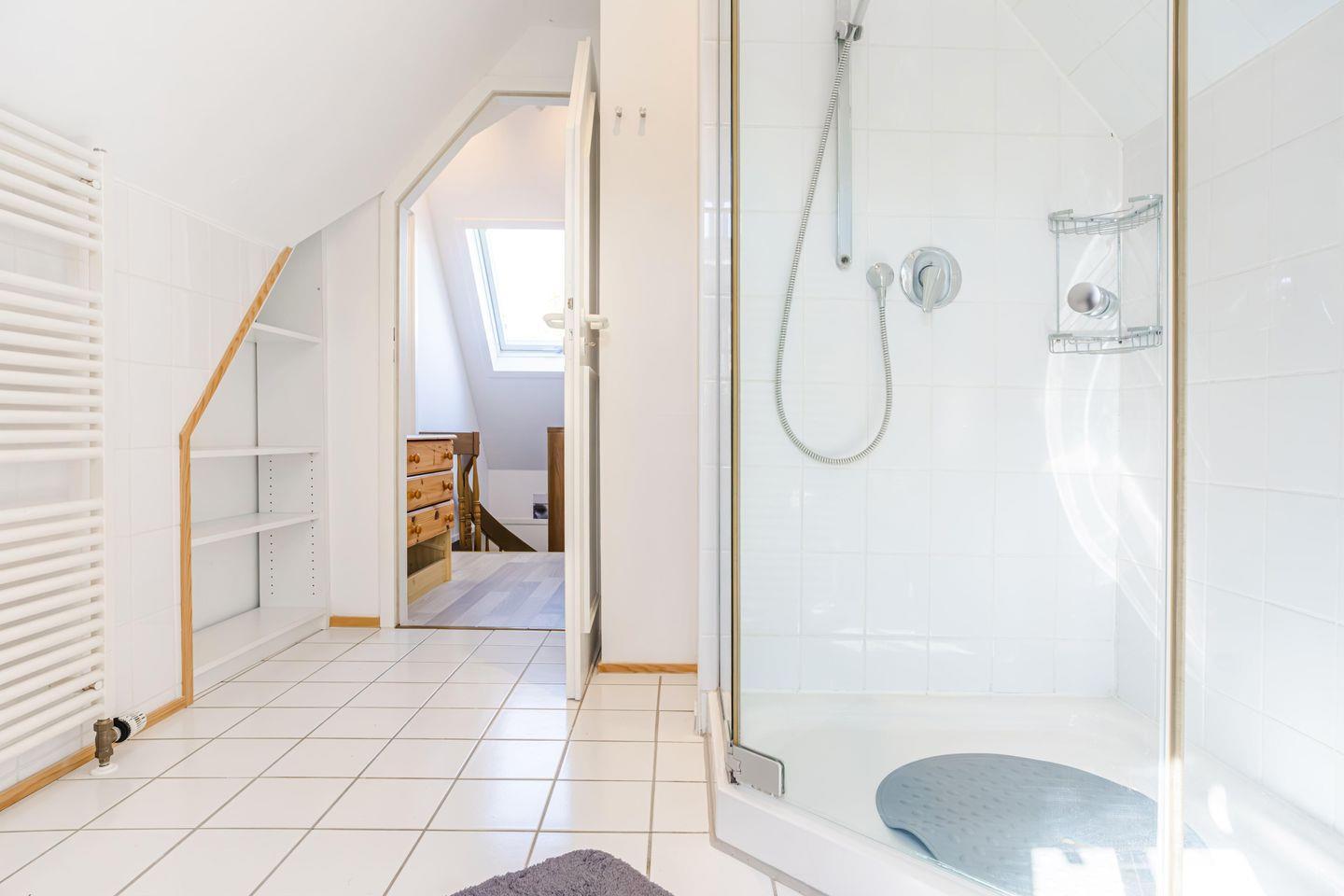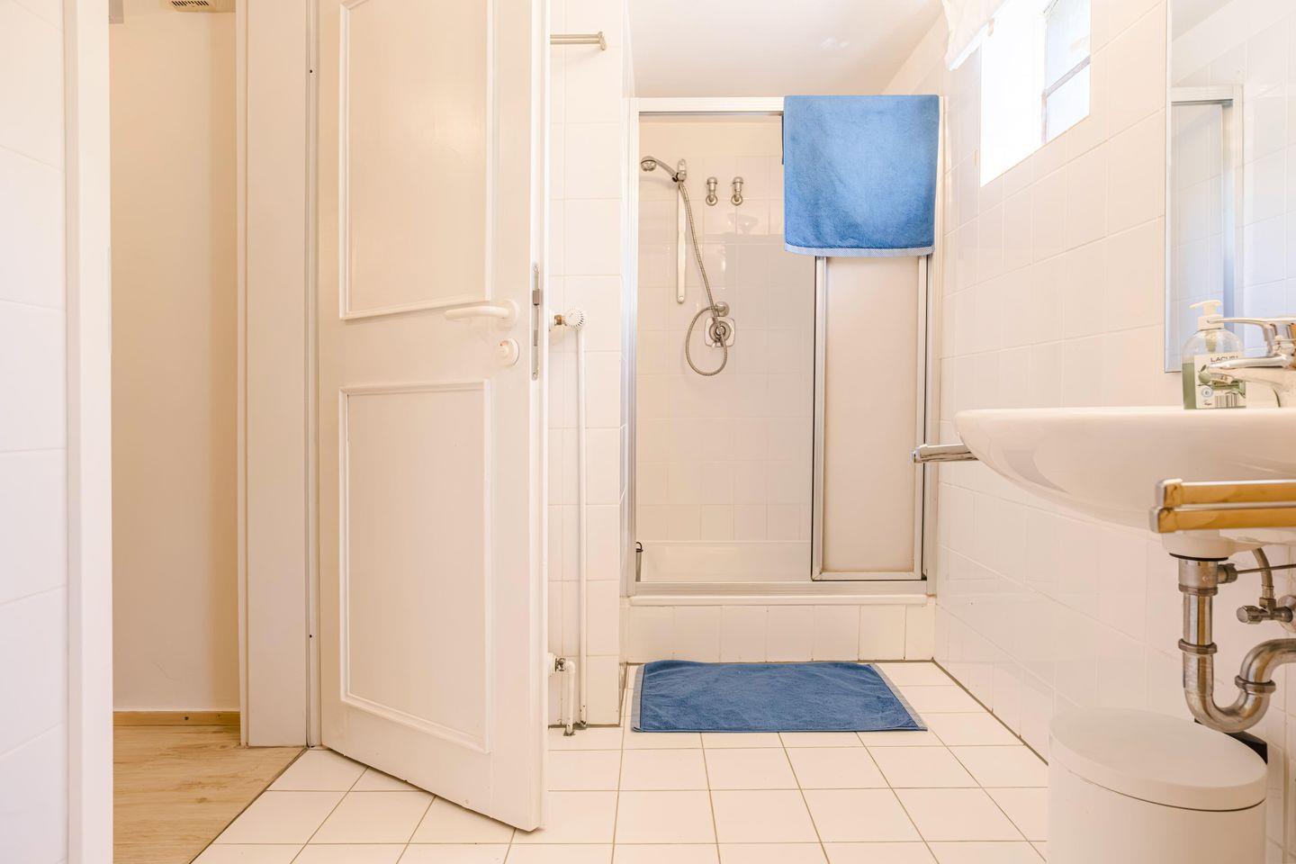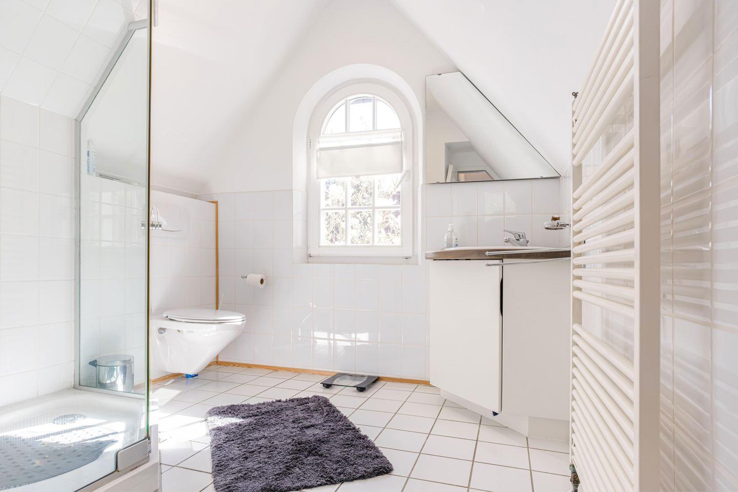 Zwei Schlafräume mit jeweils einem Doppelbett und das Bad befinden sich im Obergeschoss. Das Untergeschoss mit beidseitigem Tageslicht verfügt über einen Schlafraum mit Doppelbett in dem auch ein Schreibtisch zu finden ist. Außerdem ist dort das zweite Bad mit Dusche, WC und Waschmaschine.