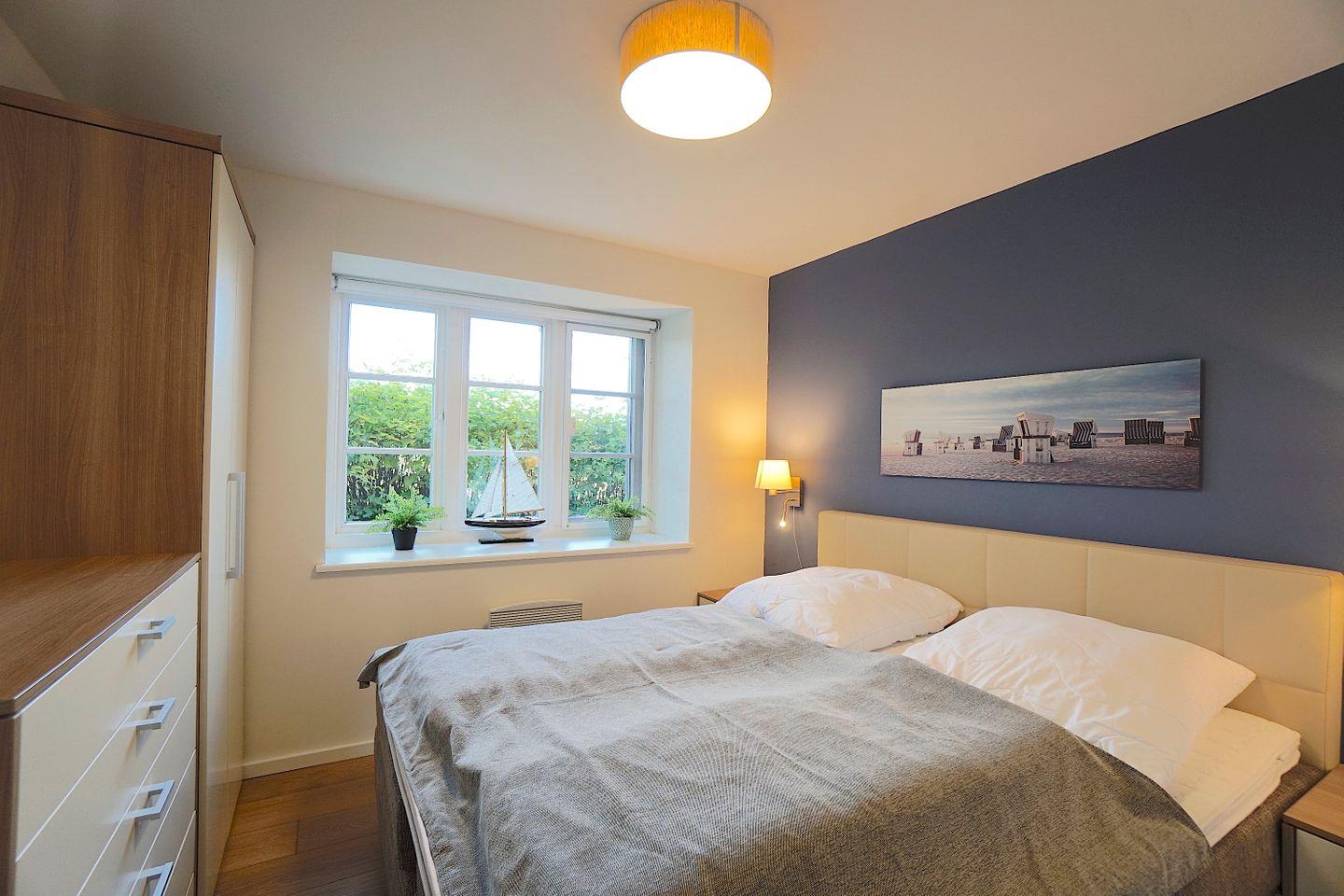 Beide Schlafzimmer liegen im Erdgeschoss und haben ca. die gleiche Größe. Sie sind ausgestattet mit hochwertigen Doppelbetten und Kleiderschränken mit viel Stauraum.