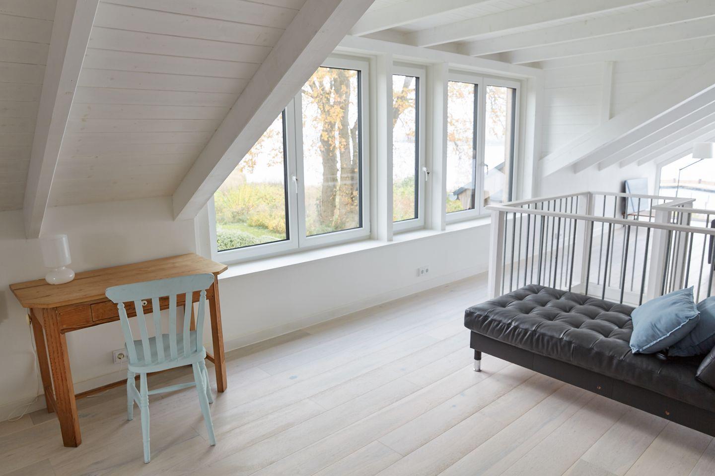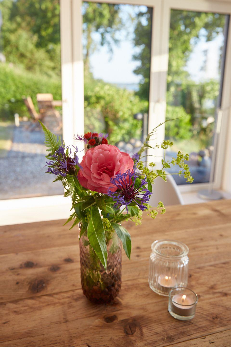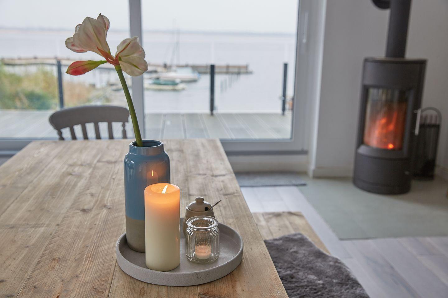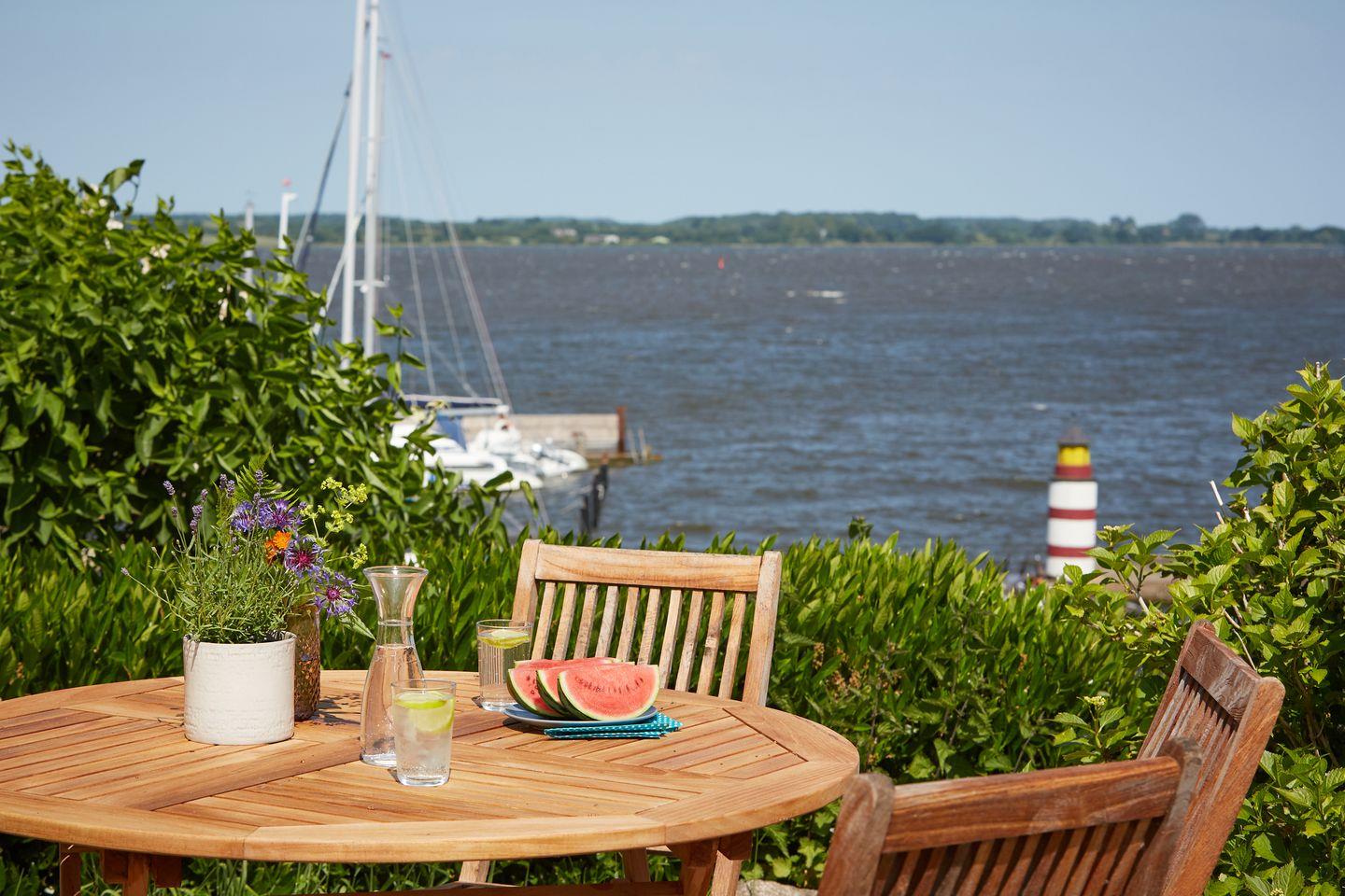 Ein Highlight ist die große Terrasse mit einem atemberaubenden Blick auf die Schlei. Hier erlebt ihr fantastische Sonnenauf- und -untergänge und könnt die vorbeiziehenden Enten, Gänse und Fischreiher beobachten – mit etwas Glück zeigt sich sogar ein Seeadler. Der angrenzende Garten bietet eine Oase der Ruhe und lädt mit Sonnenliegen und einem hochwertigen Gasgrill zum Verweilen ein.