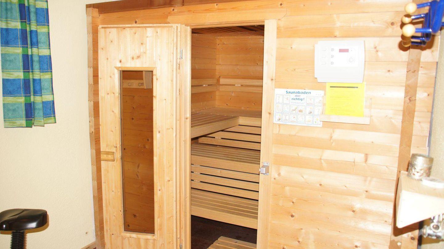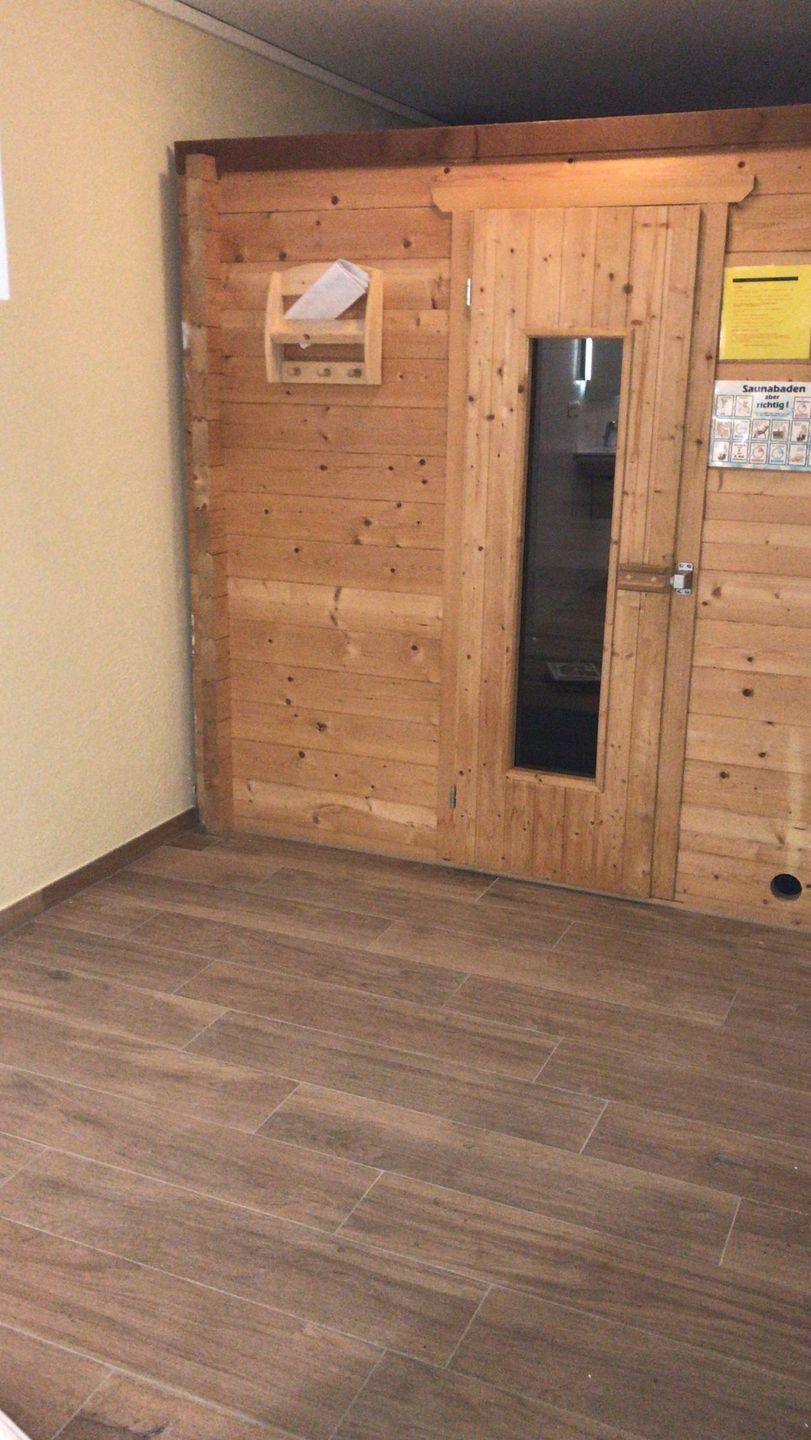 Die Sauna im Souterrain bietet Ihnen entspannte Momente. Hier befindet sich auch die Waschmaschine. Und ganz neu ein zweites Badezimmer mit bodengleicher Dusche, Kneipp-Duschschlauch, WC und Waschbecken.