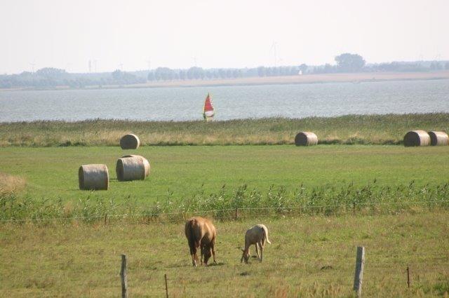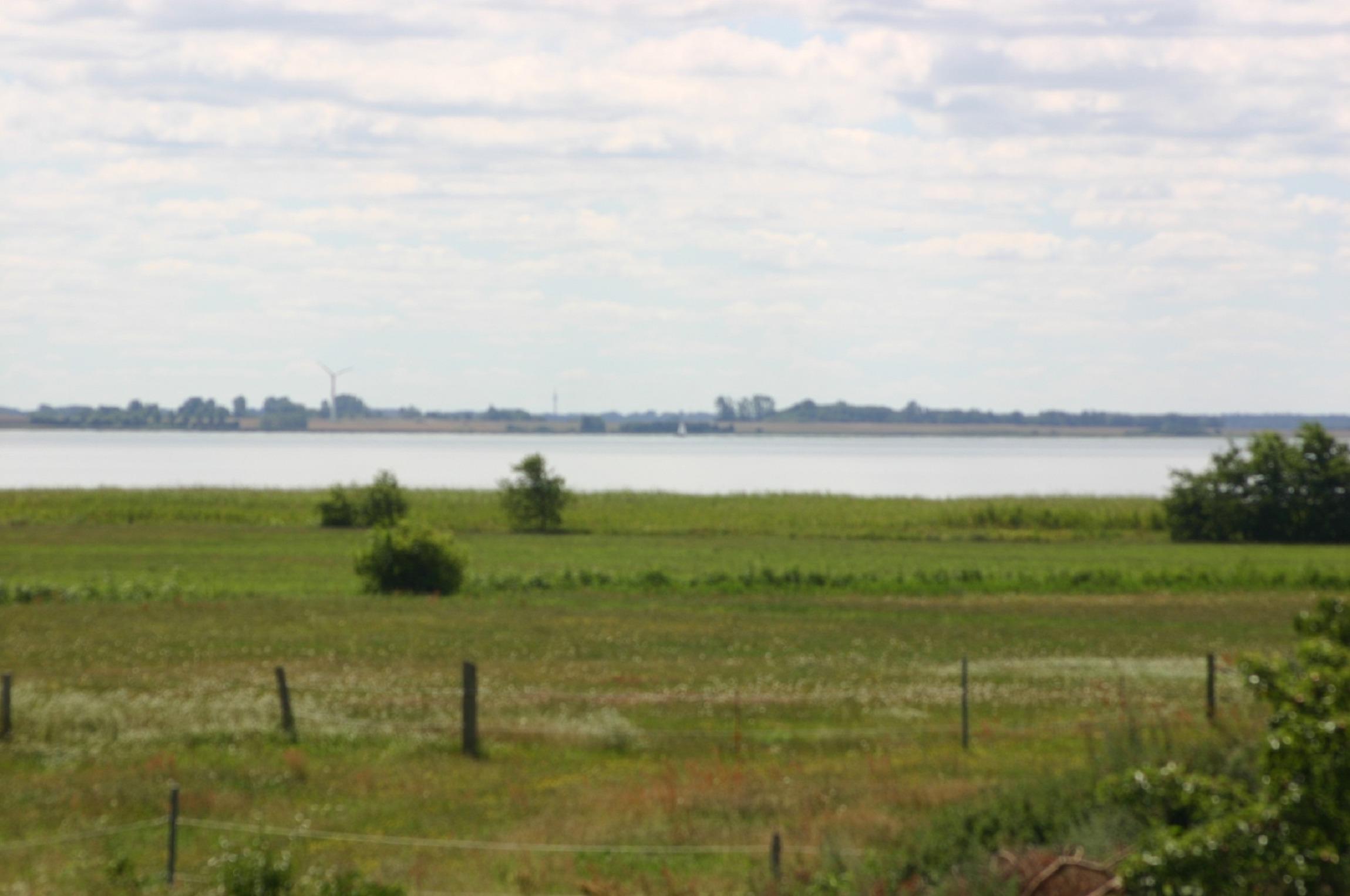 Einmaliger, atemberaubender Fernblick von der Terrasse aus über die Weiden auf den Bodden.