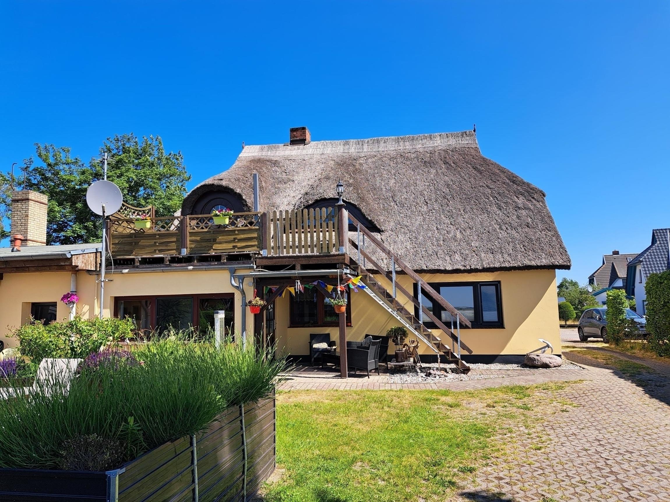 Entdecken Sie diese charmante Dachgeschoss-Ferienwohnung mit Reetdach und herrlichem Boddenblick in Born a. Darß.