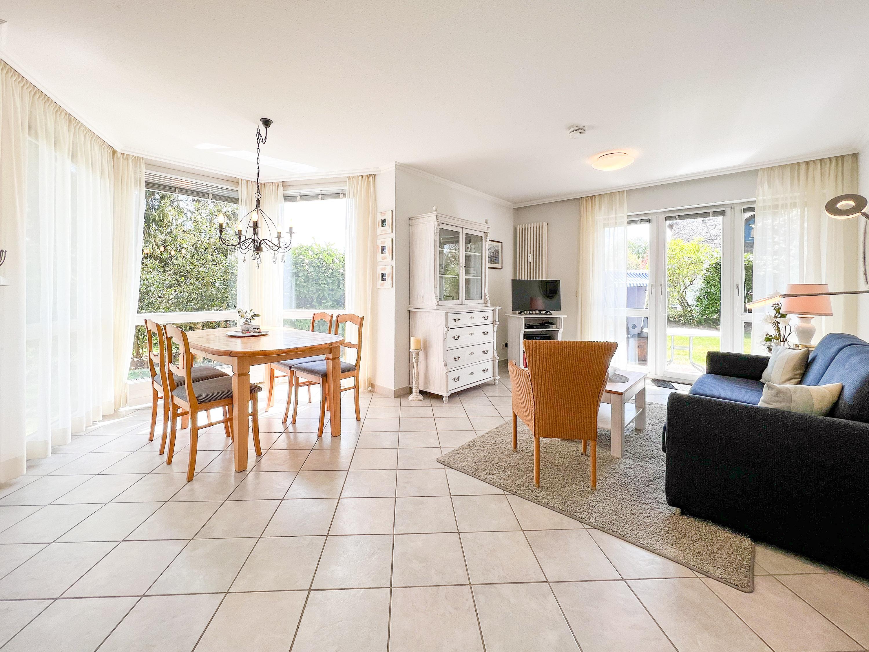 In einem idyllischen, reetgedeckten Haus gelegen, bietet diese stilvolle Wohnung auf 50 m² den perfekten Rückzugsort für zwei Personen. Hier erwarten Sie Ruhe, Komfort und das besondere Darßer Lebensgefühl – umgeben von Natur, Bodden und Ostseeluft.
