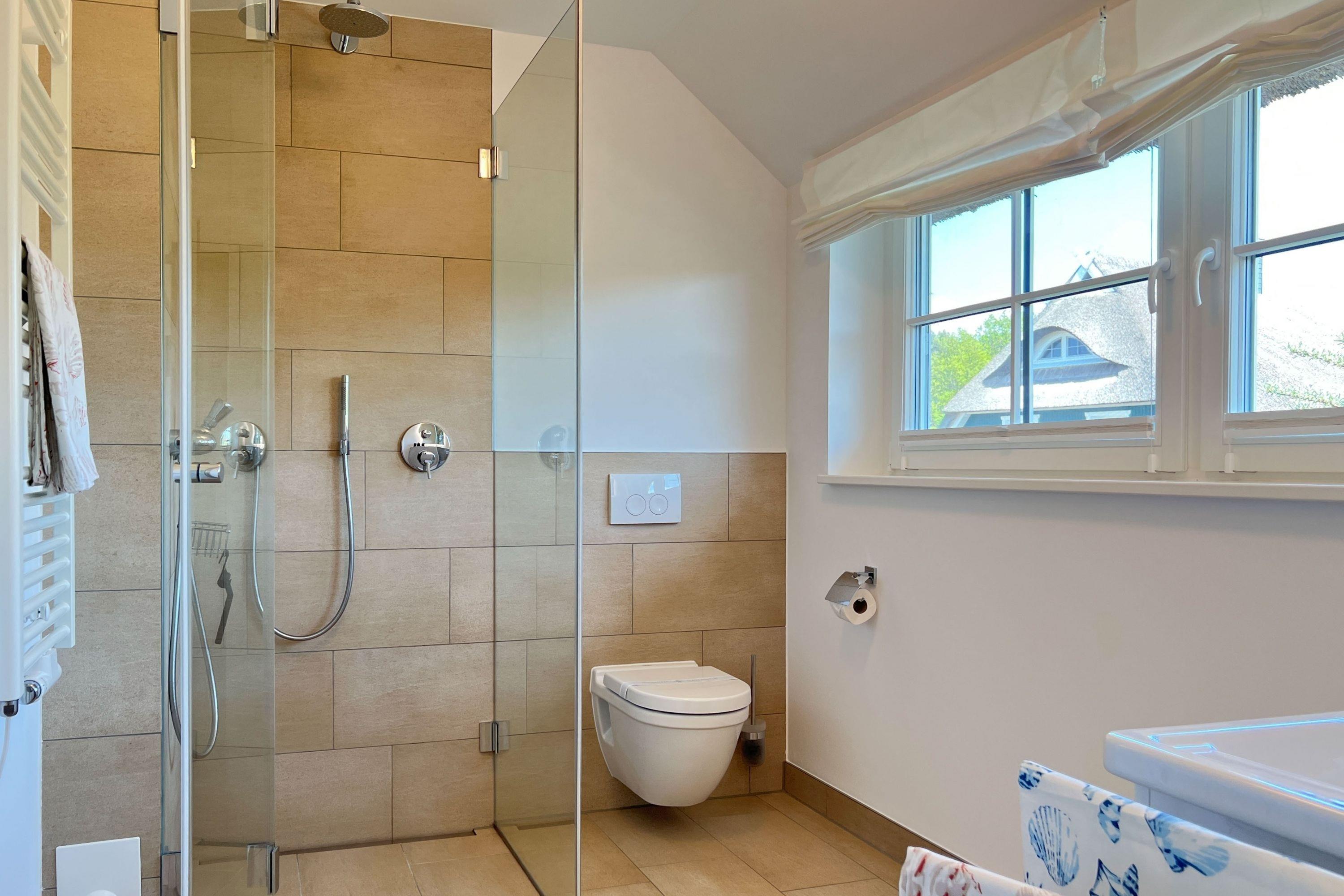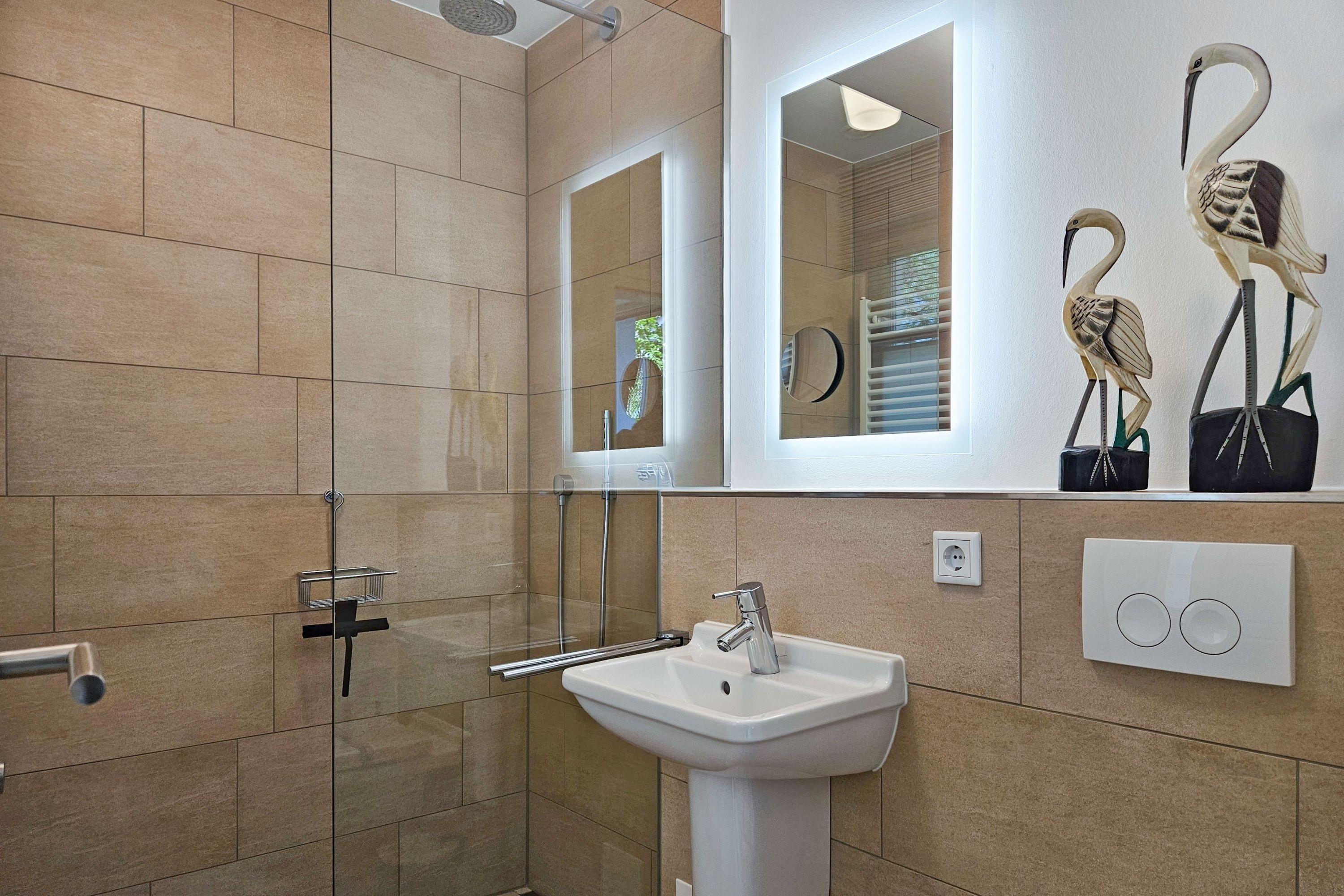 Badezimmer 1: Bodentiefe Dusche, WC, Fußboden- und Handtuchheizung