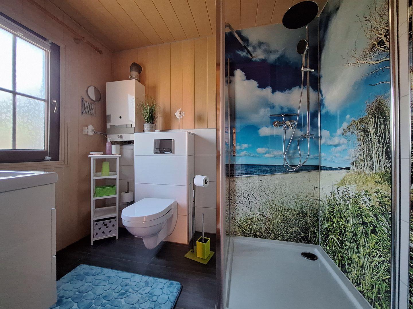 Das Badezimmer ist ausgestattet mit einer Dusche und einem Haartrockner. Ein PKW - Stellplatz gehört zu dem Ferienhaus. Unseren kleinen Gästen stellen wir gerne ein Babybett zur Verfügung.