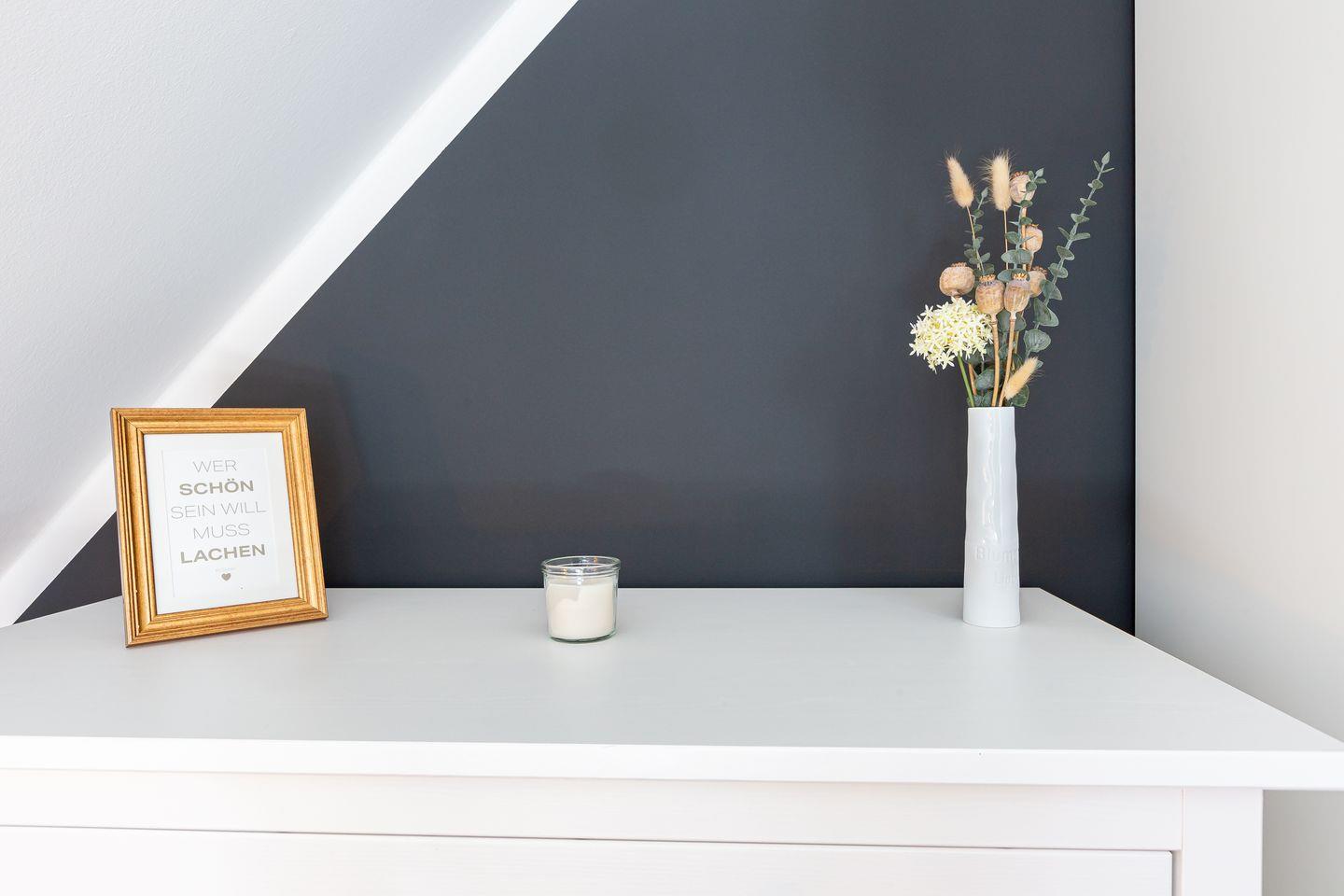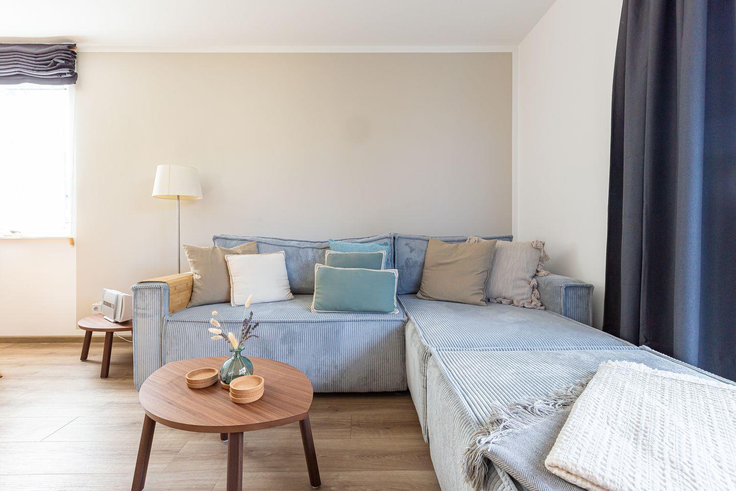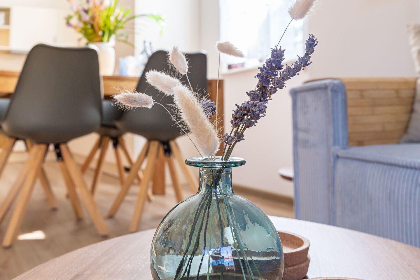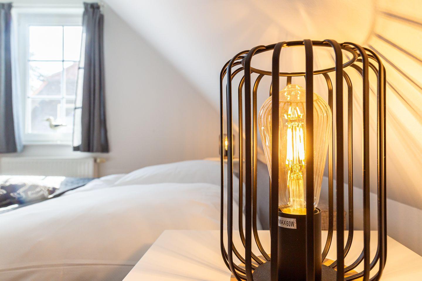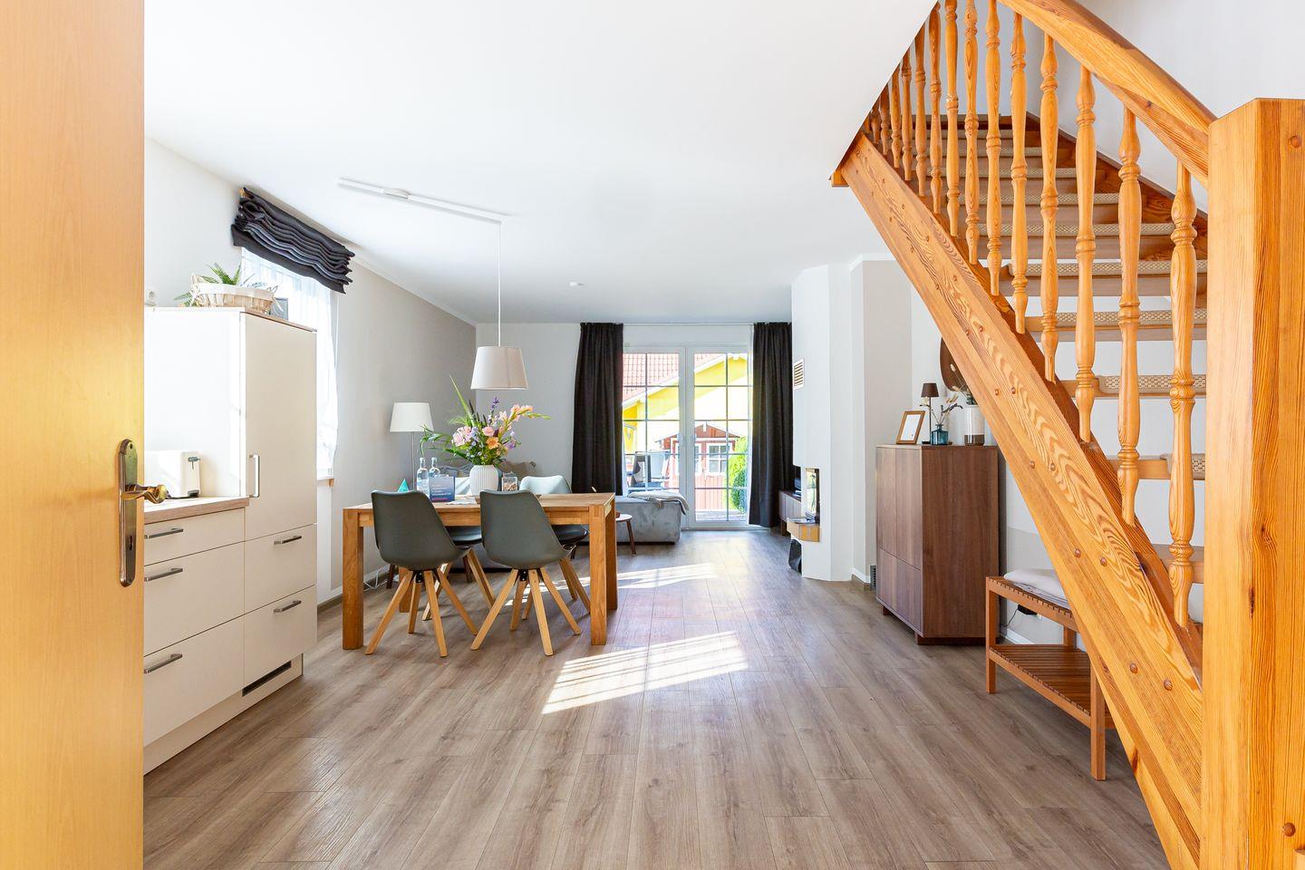 Die frisch modernisierte Ferienhaushälfte begeistert mit einer harmonischen Kombination aus hellen Farben, hochwertigen Möbeln und liebevoller Dekoration. Der offene Grundriss verbindet die top ausgestattete Küche mit dem gemütlichen Wohnzimmer. Der behagliche Kamin sorgt für wohlige Wärme und schafft eine heimelige Wohnatmosphäre, während die Couch und der großzügige Esstisch Platz für gemeinsame Mahlzeiten und relaxte Abende bieten. Vom Wohnbereich gelangt man direkt auf die Terrasse. Abgerundet wird das Erdgeschoss mit einem Gäste-WC und angeschlossenem Hauswirtschaftsraum mit Waschmaschine. Über eine Treppe erreichst du die obere Etage, wo zwei wunderschöne Schlafzimmer auf dich warten. Mit je einem Doppelbett, Verdunklungsvorhängen und Kleiderschränken ausgestattet, findest du hier den perfekten Rückzugsort für erholsame Nächte. Das Haus bietet zudem ein zweites Tageslichtbad mit Dusche/ WC im Obergeschoss, sodass Komfort und Wohlfühlatmosphäre garantiert sind.