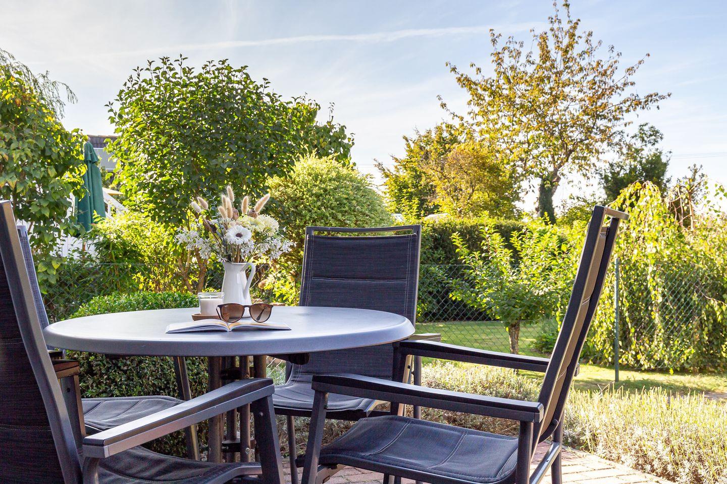 Die Terrasse im Außenbereich lädt dazu ein, die frische Landluft und die Mahlzeiten unter freiem Himmel zu genießen. Zudem gehört ein PKW-Stellplatz zum Haus. Eine öffentliche E-Ladestation befindet sich übrigens nur 200 Meter entfernt, sodass du dein Elektrofahrzeug bequem in der Nähe aufladen kannst. Willkommen in deinem Rückzugsort in Born.