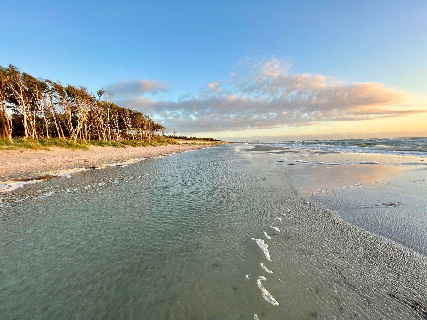 Stell dir vor, du wachst morgens auf und bist nur wenige Schritte vom Bodden entfernt. Hier kannst du die frische Brise genießen, während du den Surfern zuschaust oder vielleicht selbst einen Kurs im nahegelegenen Surfcamp belegst. Direkt vor der Haustür beginnt das weitläufige Rad- und Wanderwegenetz, das dich durch die wunderschöne Landschaft führt. Ob du die umliegenden Wälder erkunden möchtest oder eine entspannte Radtour entlang des Wassers bevorzugst – hier hast du die Wahl. Ebenfalls in der Nähe befinden sich gemütliche Restaurants und einen Bäcker, bei dem du jeden Morgen frische Brötchen holen kannst. Auch der Nationalpark ist nicht weit. Dort erwarten dich unberührte Landschaften und der wilde Weststrand – ein Paradies für Naturliebhaber.