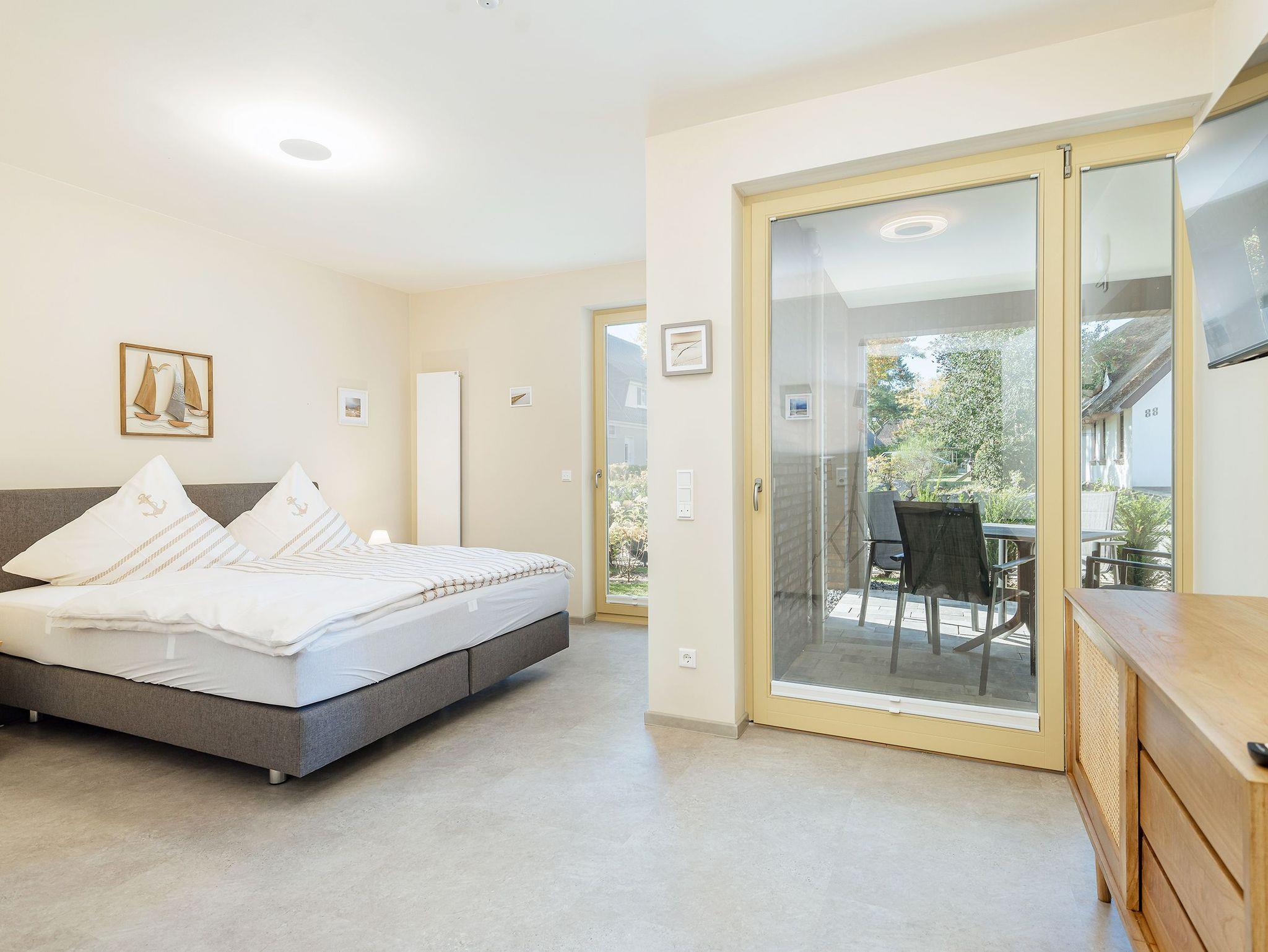 Im gemütlichen Schlafzimmer wartet ein komfortables Boxspringbett (2 x 1,80 m) darauf, Dich nach einem erlebnisreichen Tag sanft in den Schlaf zu schicken. Das stilvolle Badezimmer punktet mit großem Waschtisch, Handtuchheizkörper, elektrischer Fußbodenheizung und einer ebenerdigen Dusche ? und als besonderes Extra: Deine ganz private Sauna. Perfekt, um nach einem Strandspaziergang wieder aufzutauen.