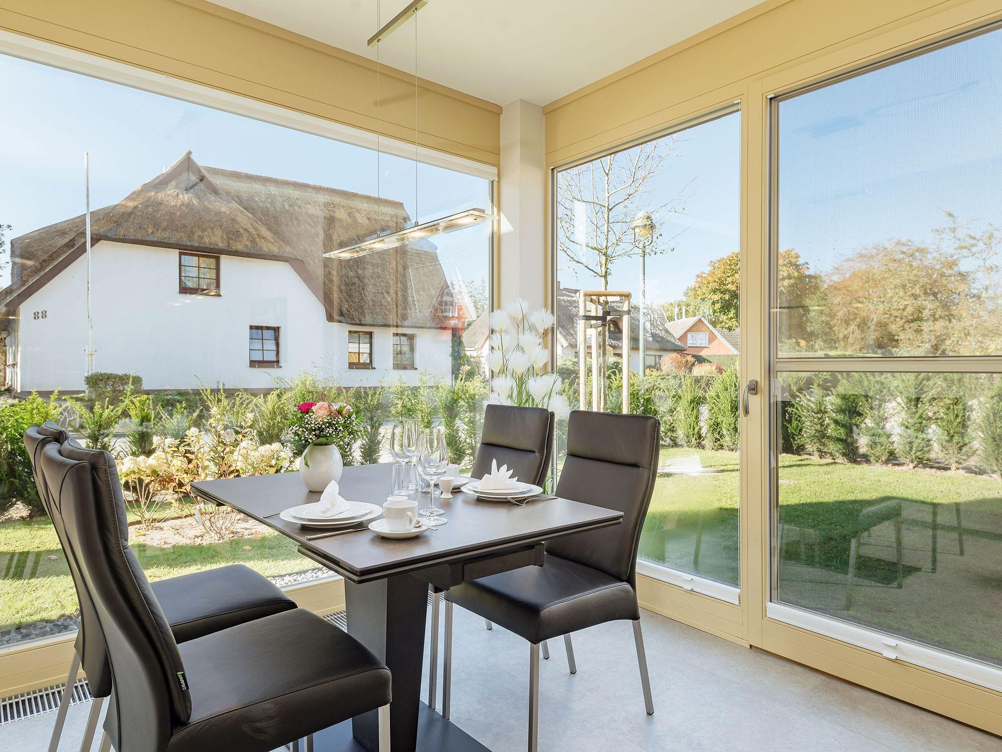 Charmante Ferienwohnung Pinschieter in Born am Darß mit Sauna, moderner Küche und Terrasse für entspannte Urlaubstage.