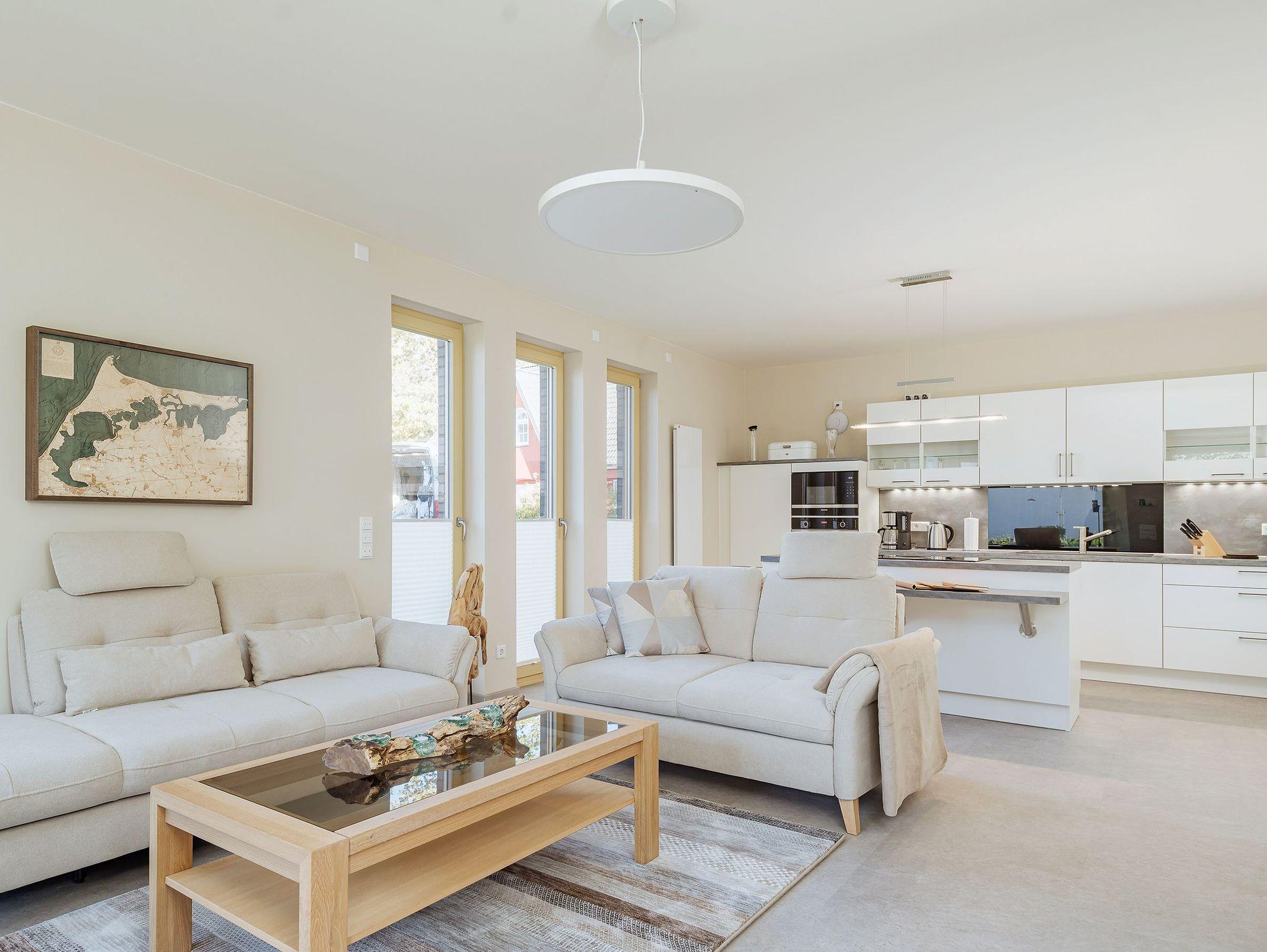 Für den nötigen Komfort sorgen Fenster mit Gaze, Plissees und Rollläden, ein eigener PKW-Außenstellplatz (auch für E-Autos geeignet) sowie ein abschließbarer Fahrradraum. Und dank Glasfaseranschluss surfst Du im WLAN schneller als die Möwen am Himmel.