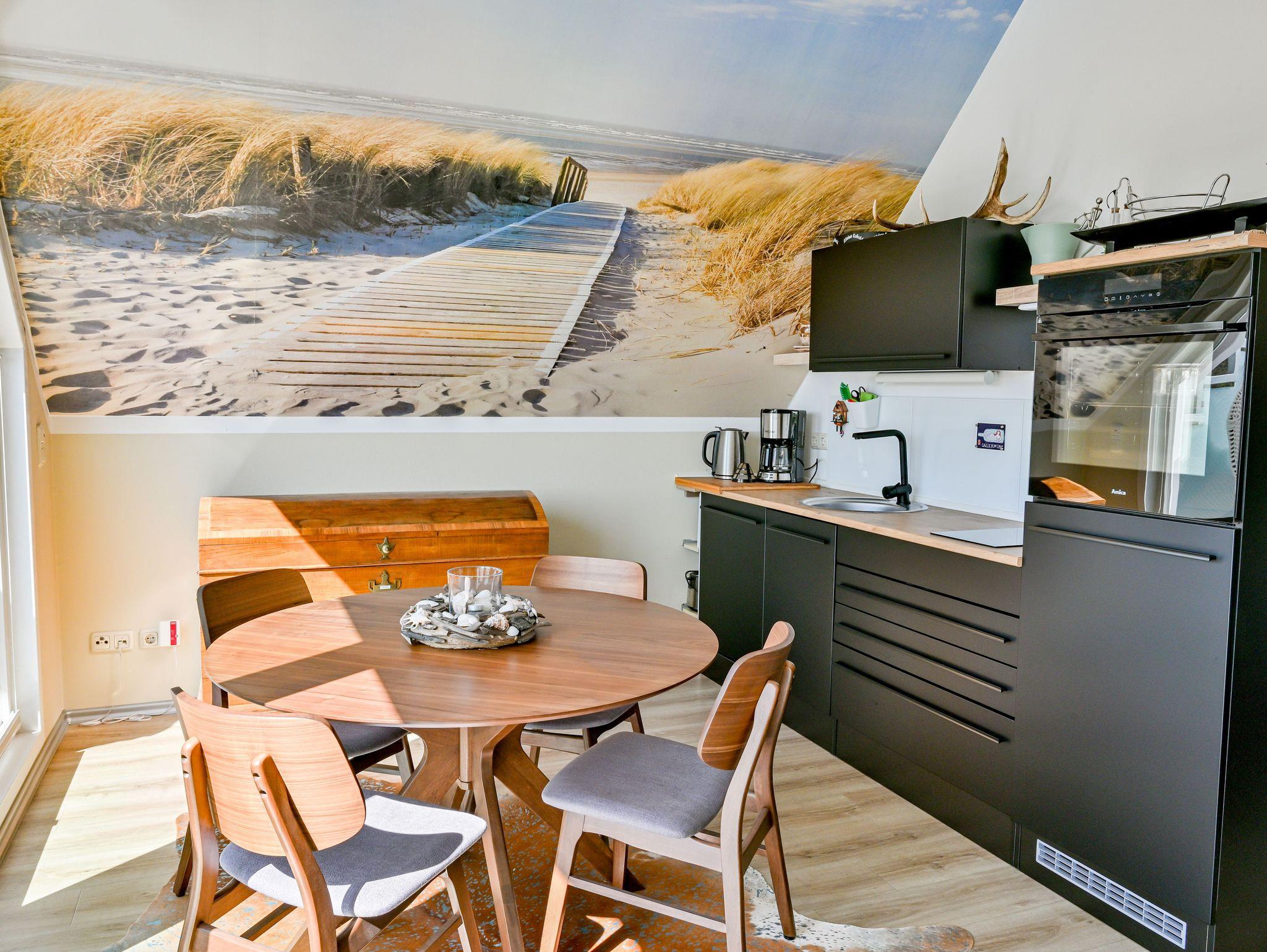Die Ferienwohnung Dünenrose ist eine gemütliche und lichtdurchflutete Ferienwohnung für zwei Personen im Obergeschoss. Die Wohnung wurde Anfang 2024 renoviert und bietet auf rund 50 qm eine moderne und komfortable Ausstattung. Durch die ruhige Lage und den Blick ins Grüne eignet sie sich besonders für Paare oder Alleinreisende, die Erholung und Natur suchen.