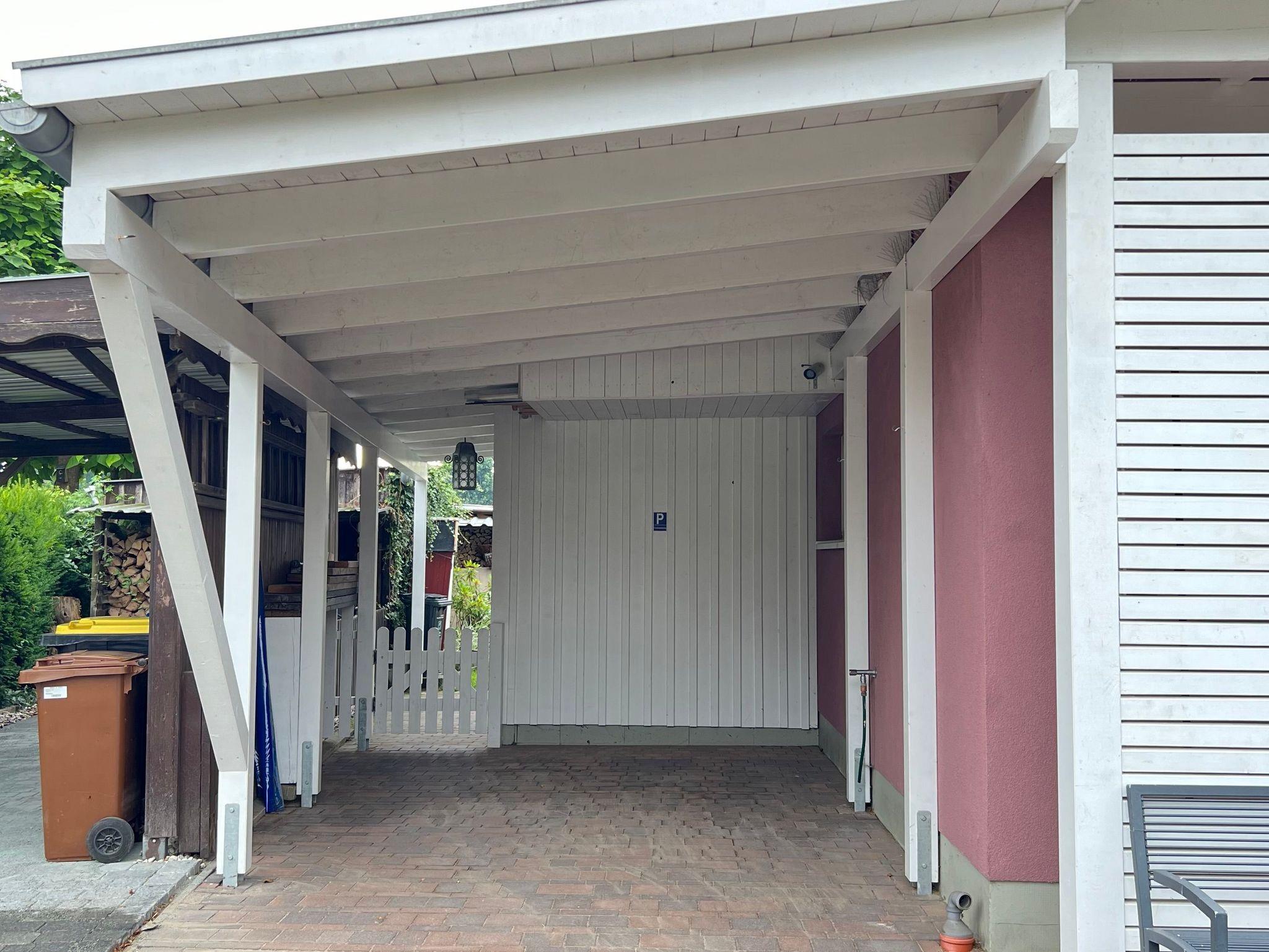 Für Fahrräder steht ein abschließbarer Fahrradschuppen zur Verfügung. Ein eigener Parkplatz unter einem Carport befindet sich direkt am Haus. Ein lieber Hund ist in der Ferienwohnung gegen Aufpreis willkommen.