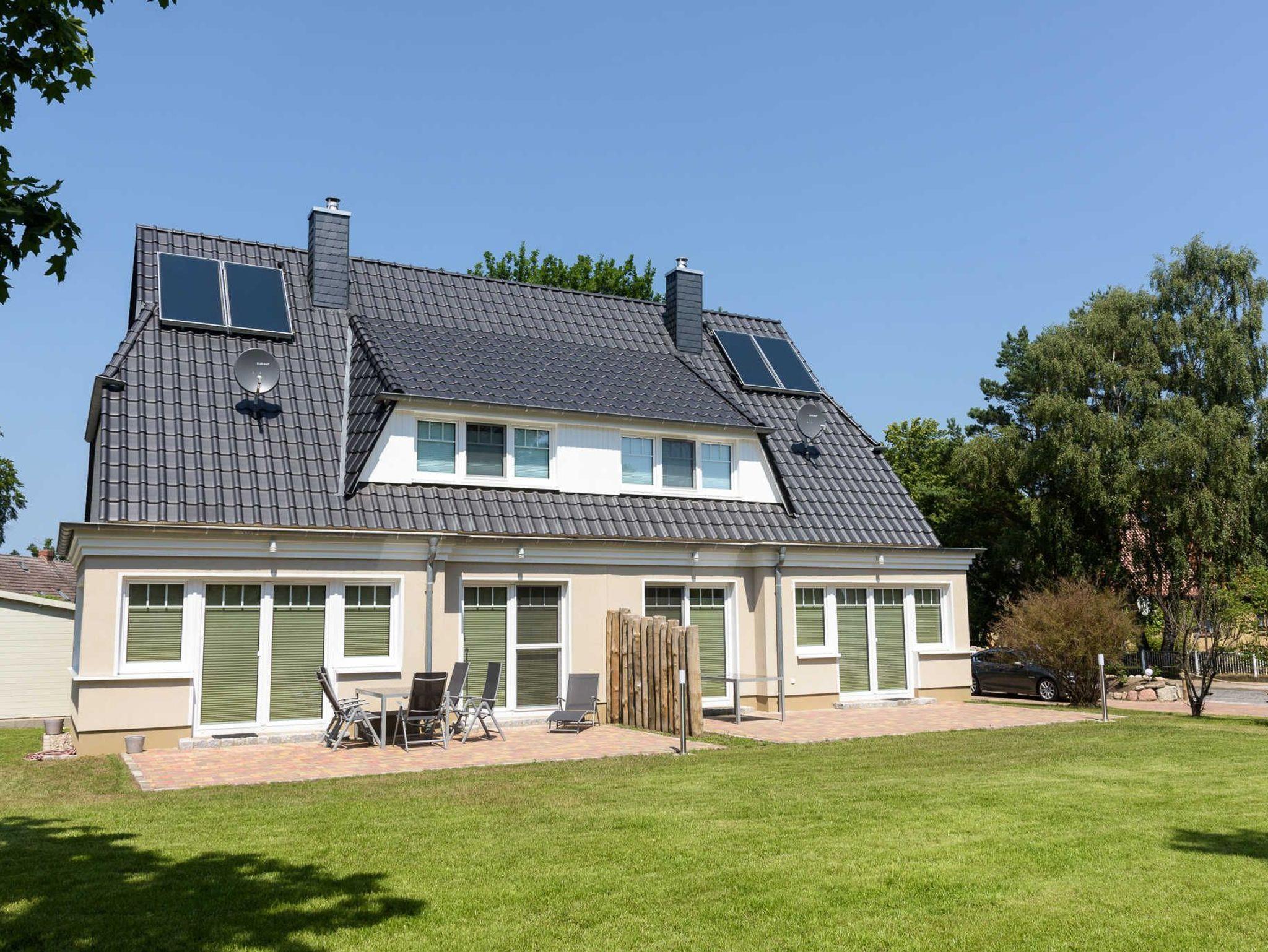 Unser Warmwasser wird umweltgerecht über eine Solaranlage auf dem Dach erzeugt. Unser Haus Bodden ist ein Nichtraucher-Haus, deshalb darf ausschließlich auf der Terrasse vor dem Haus geraucht werden. Die große Terrasse in Südlage vor dem Haus bietet die Möglichkeit die Sonnenstunden zu genießen oder sich im 500 m² Garten ein schattiges Plätzchen unter den Bäumen zu suchen. Gartenmöbel sind ausreichend vorhanden.