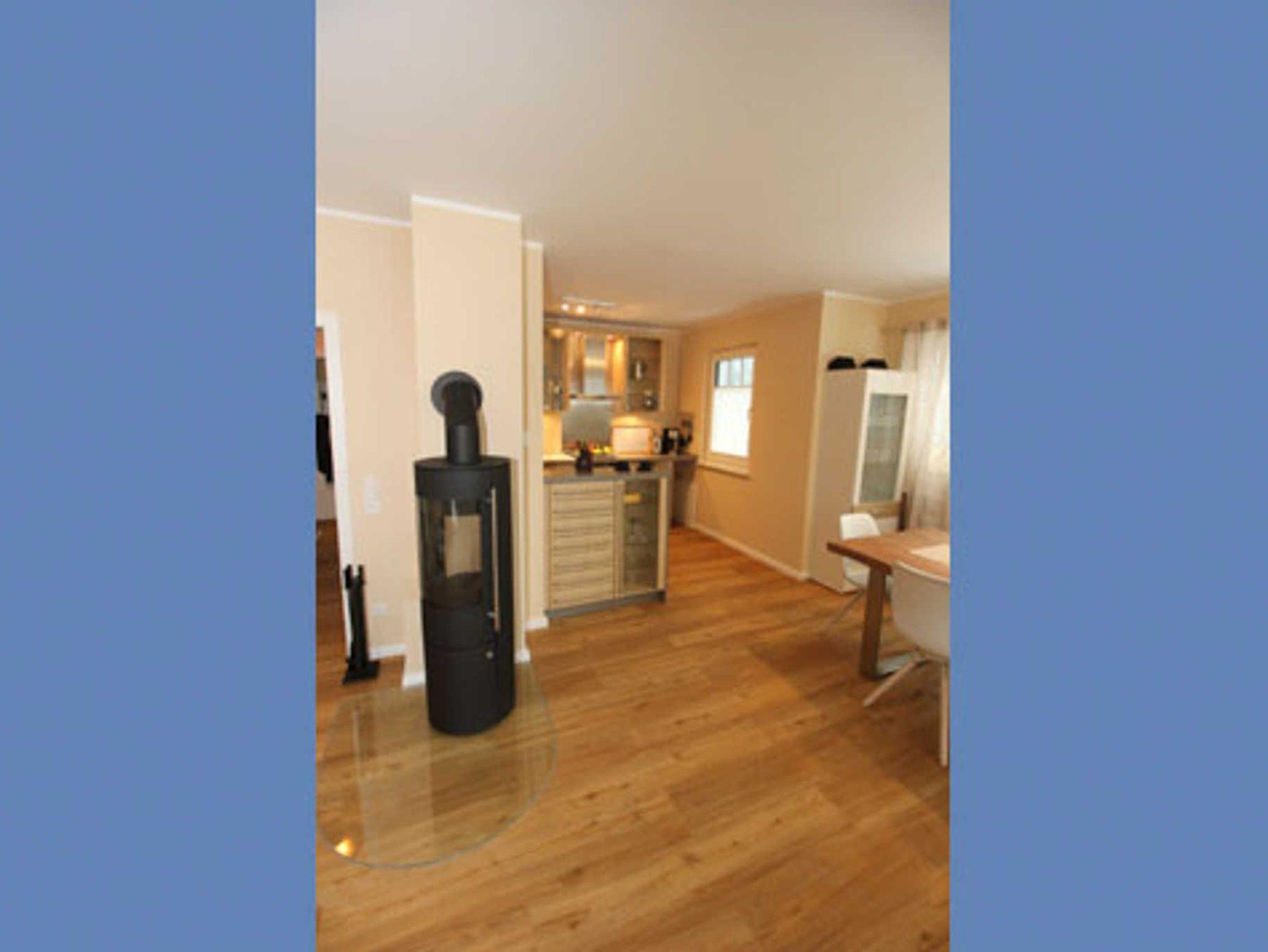 Das großzügige Wohnzimmer mit einem Kaminofen, einer hochwertigen Stereo Anlage und einem Smart-LED TV mit Internetzugang sorgen für die notwendige Unterhaltung. Eine gemütliche Leder-Couch mit Recamiere und 2 Sessel laden zum entspannten Verweilen ein. Ebenso erwartet sie neben der offenen Küche der großzügige Essbereich für 6 Personen mit einem Unikat Baumscheibentischan dem es sich vorzüglich tafeln lässt. Die offen gehaltene Küche mit Tresenschrank und Barhockern lädt zum gemeinsamen Vorbereiten von Gerichten ein. Das Cerankochfeld und derKombi-Backofen mit Mikrowellenfunktion, sowie der Geschirrspüler und ein großer Kühlschrank mit Gefrierfach und Null-Grad Zone machen das Kochen zum Vergnügen.