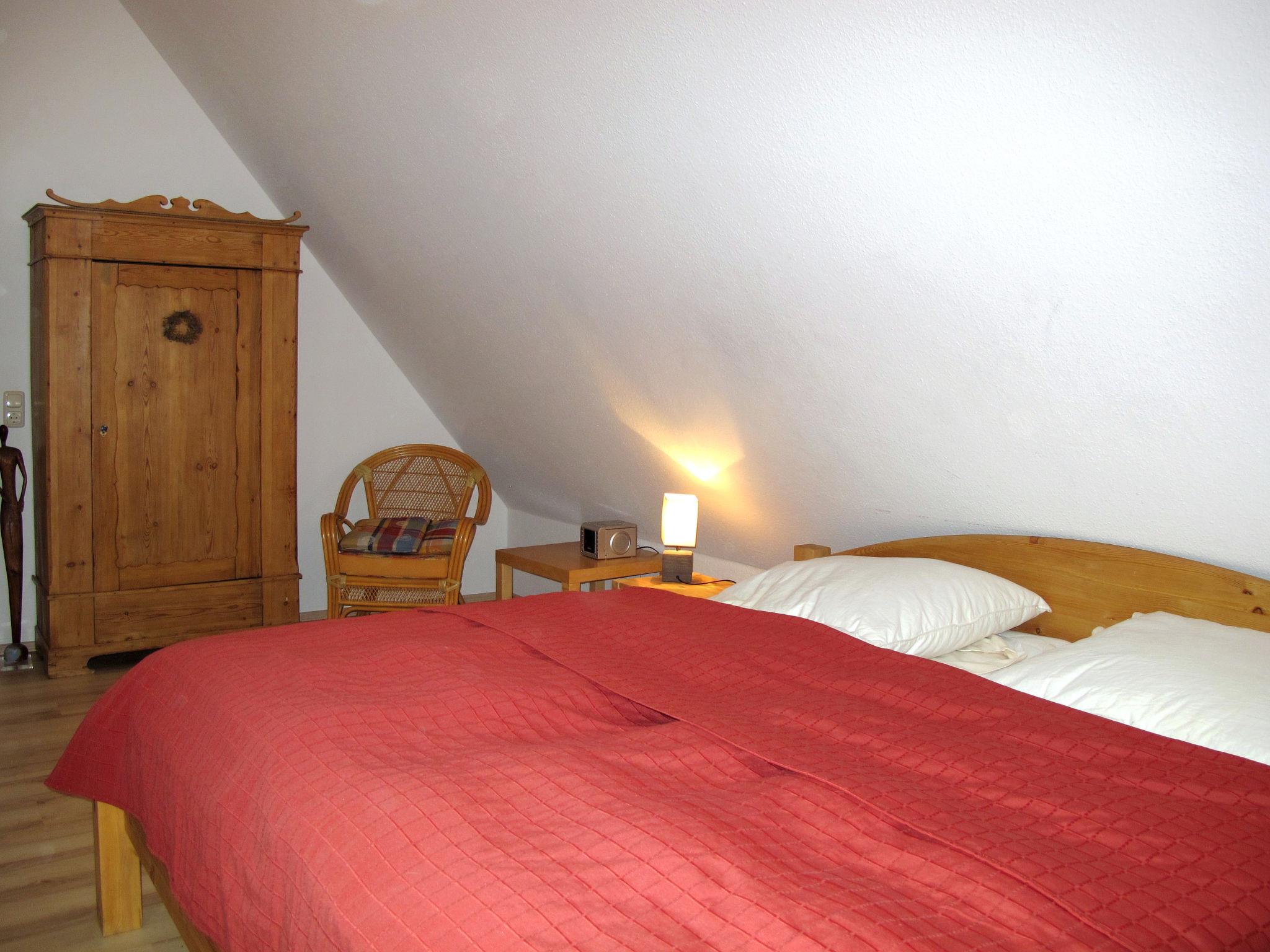 "Spitzgatt", 3-Zimmer-Wohnung 80 m2 auf 2 Stockwerken. Geschmackvoll eingerichtet: Obergeschoss: Wohn-/Esszimmer mit Sat-TV und CD. Ausgang zum Balkon. 1 Doppelzimmer. Kochnische (Backofen, Geschirrspüler, 4 Glaskeramikplatten, Toaster, elektrische Kaffeemaschine). Dusche/WC. Dachgeschoss: 1 abgeschrägtes Zimmer mit 1 Doppelbett. Sep. WC. G-Heizung. Balkon. Balkonmöbel. Zur Verfügung: Waschmaschine, Kinderhochstuhl, Babybett bis 2 Jahre. Internet (Wireless LAN, gratis). Parkplatz (1 Auto). Bitte beachten: Nichtraucher-Unterkunft. Maximal 1 Haustier/Hund erlaubt. Rauchmelder.