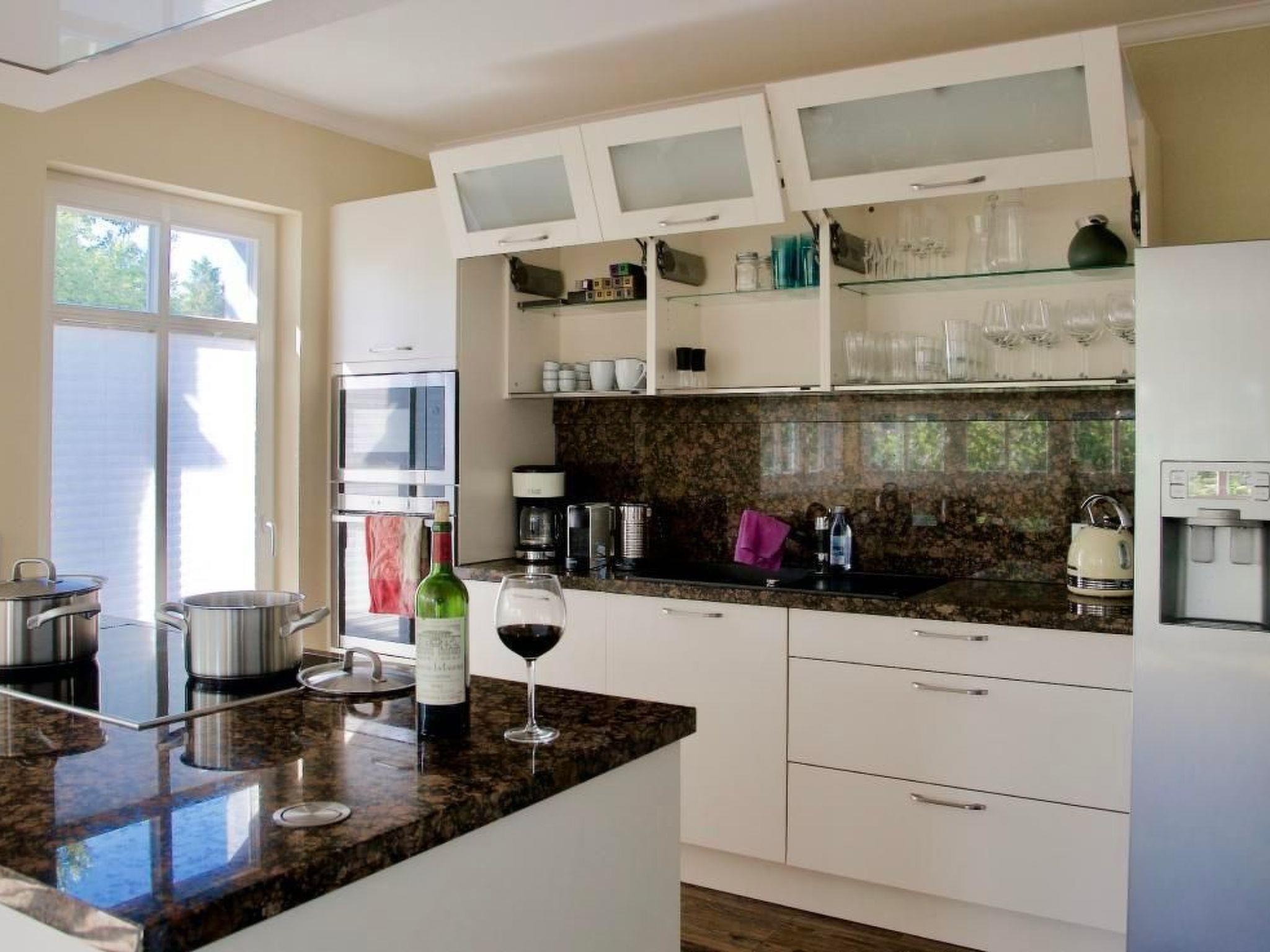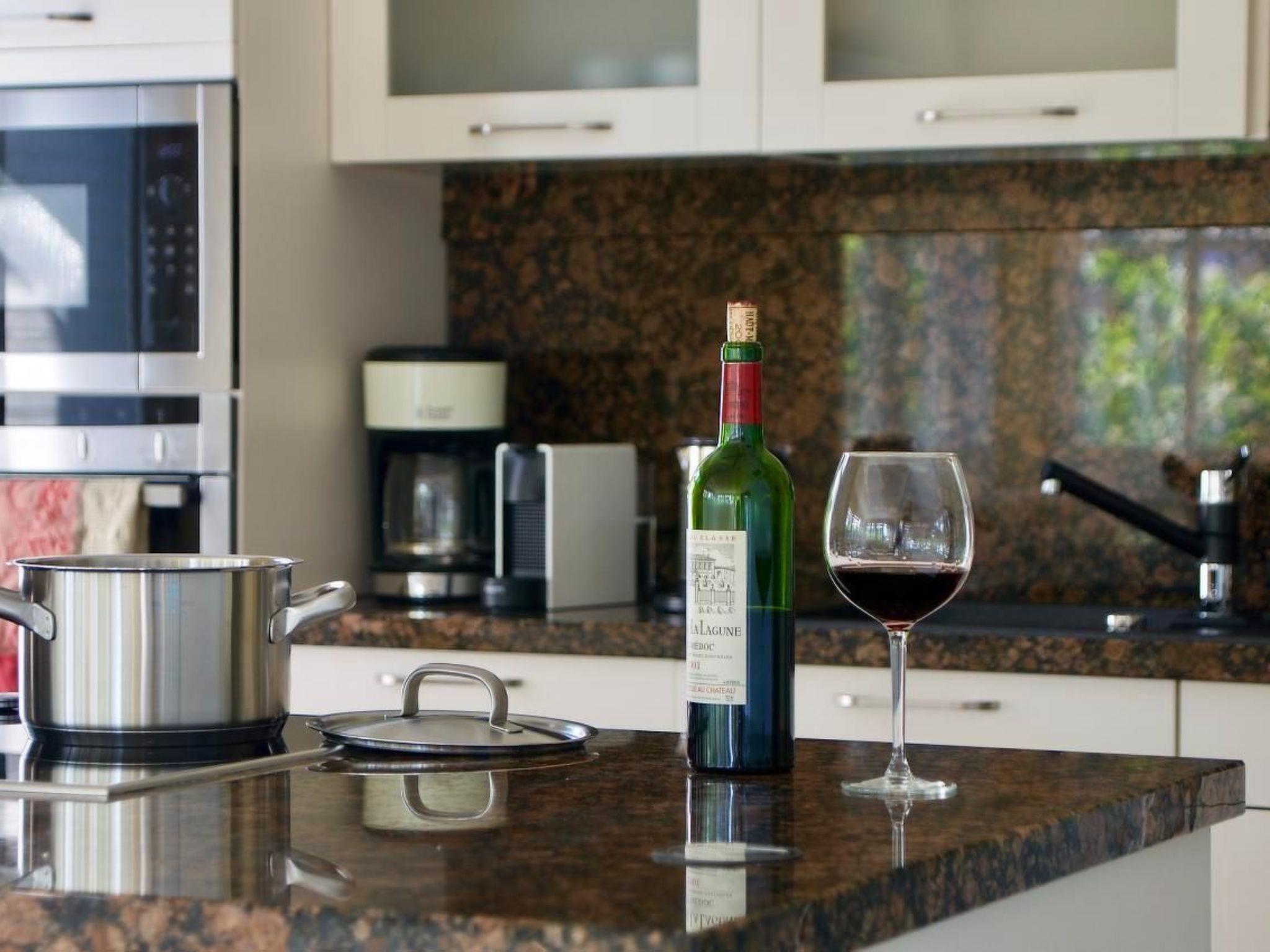 Sonstige Kücheneinrichtung : Großer Induktionsherd mit 5 Kochzonen, Austritt auf Nebenterrasse, Großer Kühlschrank mit Minibarfach und separater Eisschrank mit Eiswürfelausgabe. Küche offen zum Esszimmer