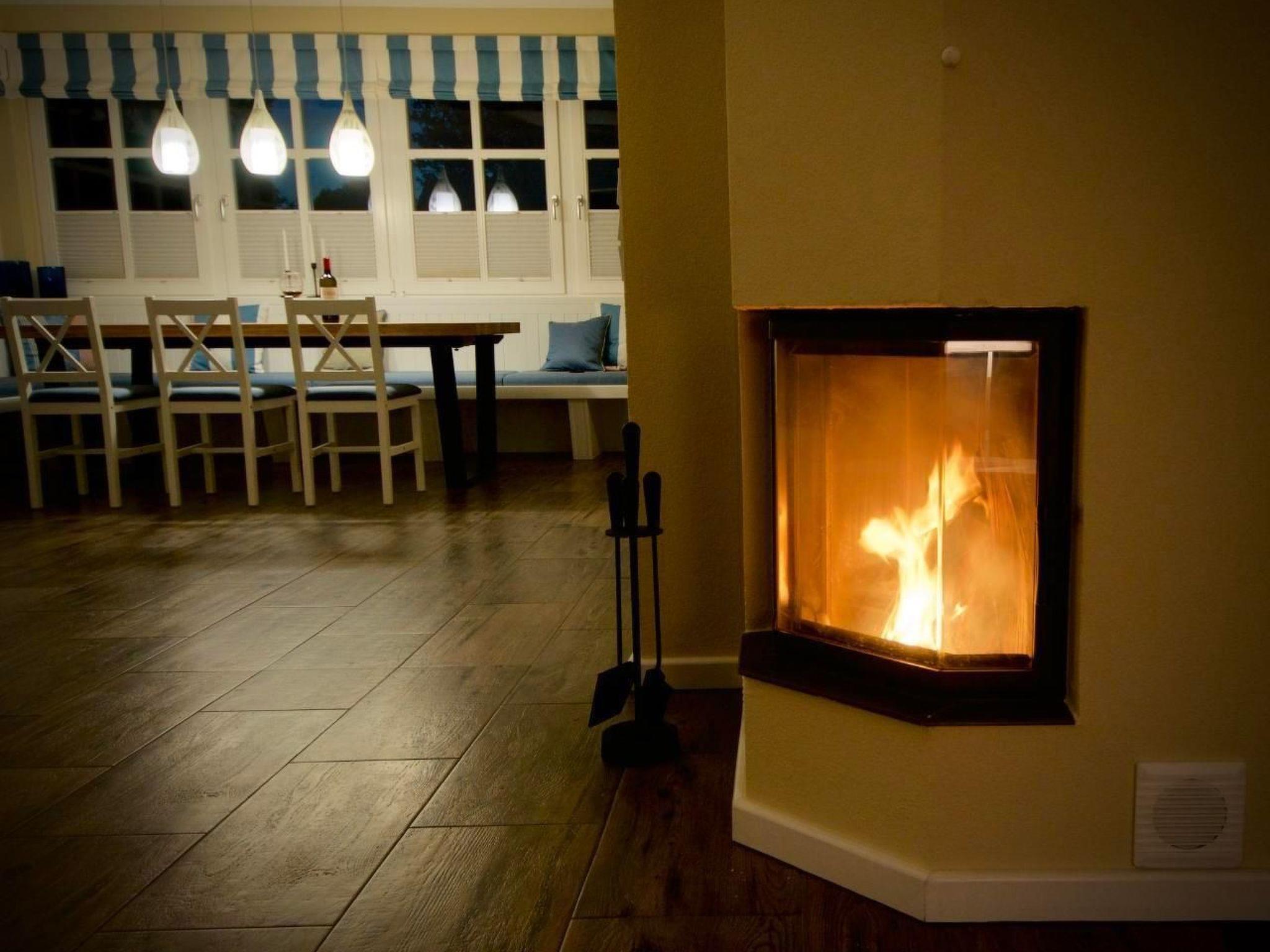 Sonstige Wohnzimmerausstattung : Offener Wohn-Ess-Bereich. Im Wohnzimmer Flat TV, T-Entertain, Apple TV, Separater Lesessel, Kamin im Wohnzimmer. Im Esszimmer großer Holztisch für bis zu 10 Personen, große Eckbank im lichtdurchfluteten Erker
