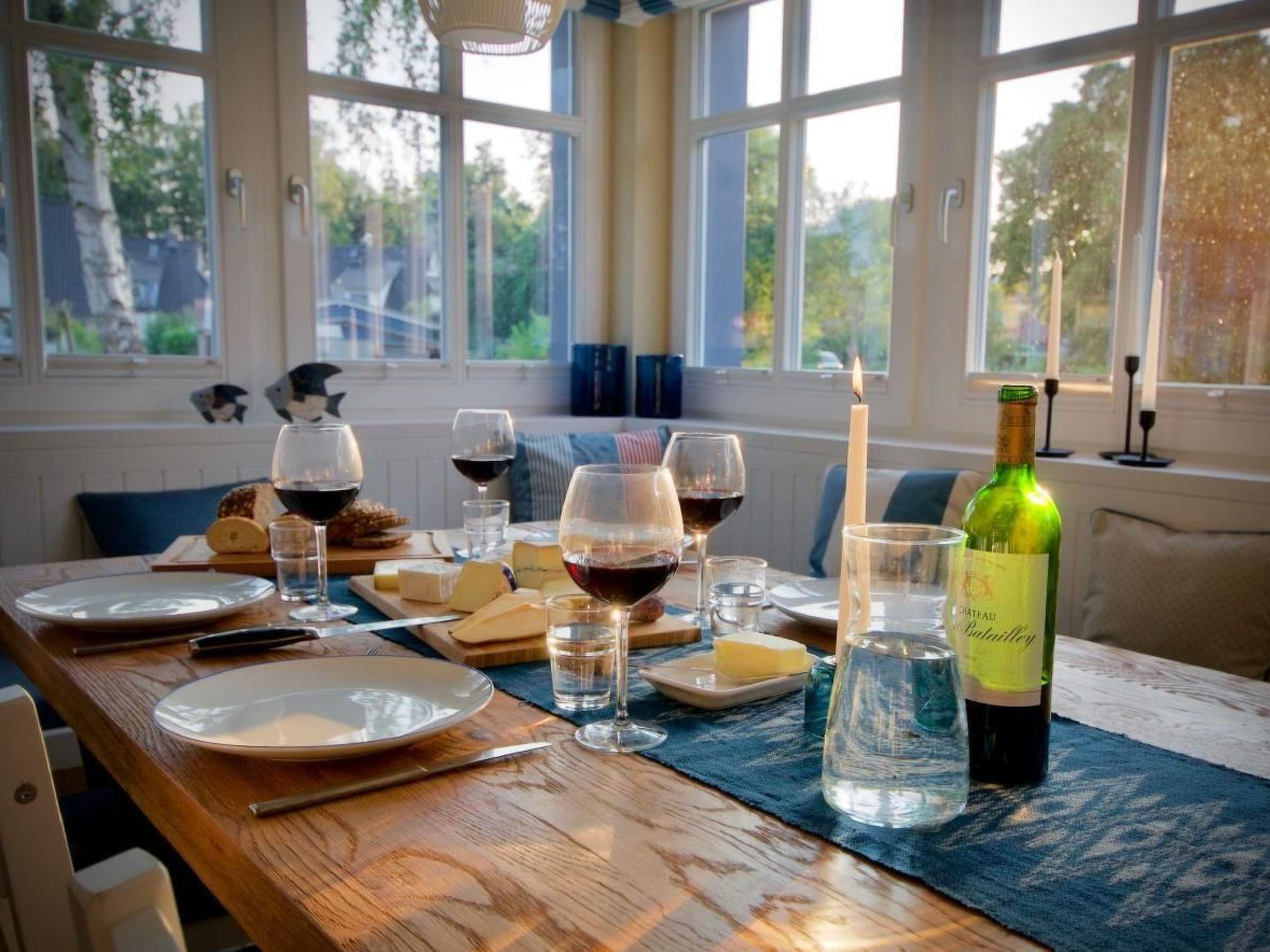 Haus Meerblau wurde im Stil eines traditionellen Darßer Kapitänshauses mit Reetdach erbaut und 2018 mit viel Liebe zum Detail in ein exklusives Ferienhaus umgewandelt. Seit Herbst 2019 gehört ein großzügiges Sauna- und Wellnesshaus zum Ensemble. Haus Meerblau verwöhnt bis zu 6 Personen mit allem erdenklichen Komfort und hochwertiger Ausstattung – mit Kamin und Fußbodenheizung, Boxspringbetten, top ausgestatteter Küche mit Induktionsherd und Nespresso-Maschine, BOSE SoundTouch Musiksystem, WLAN, … Auf einem 1100 qm großen Süd-West-Grundstück bietet das großzügige Haus mit 170 qm Wohnfläche (davon 35 qm im Sauna- und Wellnesshaus) Platz für einen entspannten Urlaub. Egal ob Sie in der modernen Küche gemeinsam kochen, mit einem guten Buch und einem Glas Wein im Sessel am Kamin oder auf dem gemütlichen Sofa entspannen, nach dem Saunagang im Ruheraum den Blick in den Garten genießen, am großen Esstisch oder im Garten Spiele spielen – hier können Sie sich ungestört erholen und die Seele baumeln lassen.