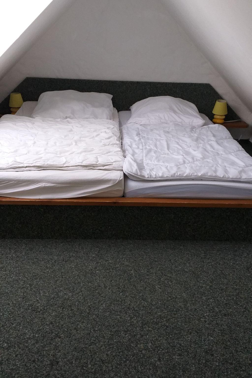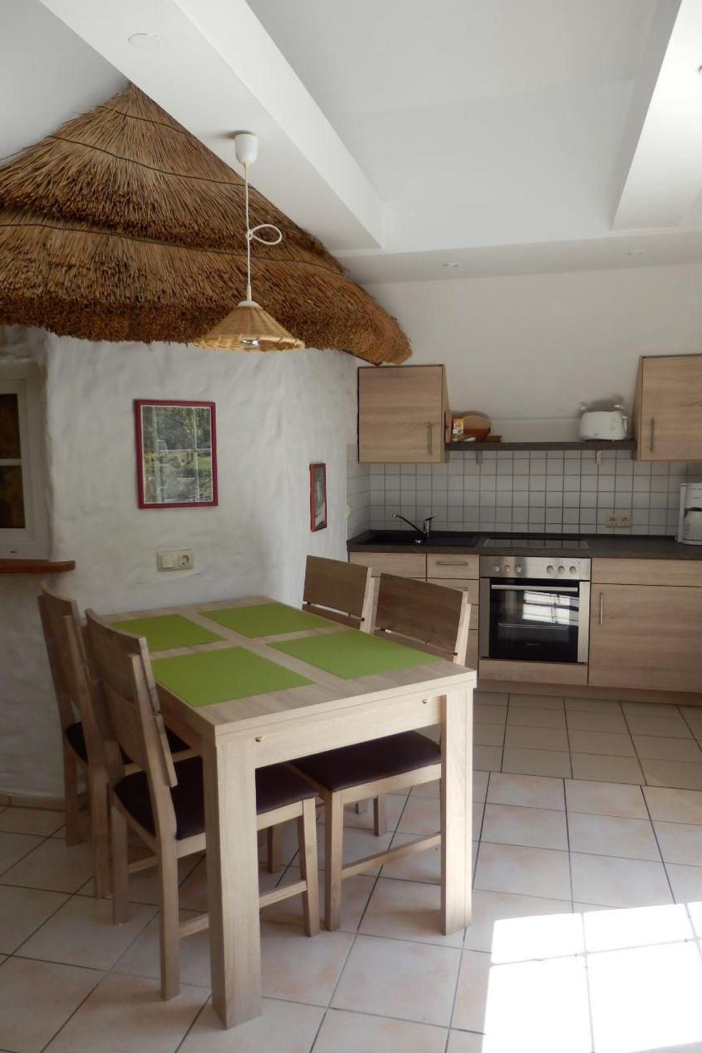 Im Inneren der Unterkunft empfängt Sie eine warme und einladende Atmosphäre. Der offene Wohnbereich mit integrierter Küche lässt keine Wünsche offen und ist mit allem ausgestattet, was Sie für die Selbstversorgung benötigen: Kühlschrank, Backofen, Gefrierfach, Ceranfeld, Kaffeemaschine, Toaster und Wasserkocher. Für Unterhaltung ist ebenfalls gesorgt mit Sat.-TV, Radio und CD-Player. Auf dem charmanten Spitzboden finden Sie zwei separate Schlafbereiche mit jeweils einem komfortablen Doppelbett (1,60m x 2,00m), sowie ein modern ausgestattetes Badezimmer mit Dusche, Toilette und Waschbecken.