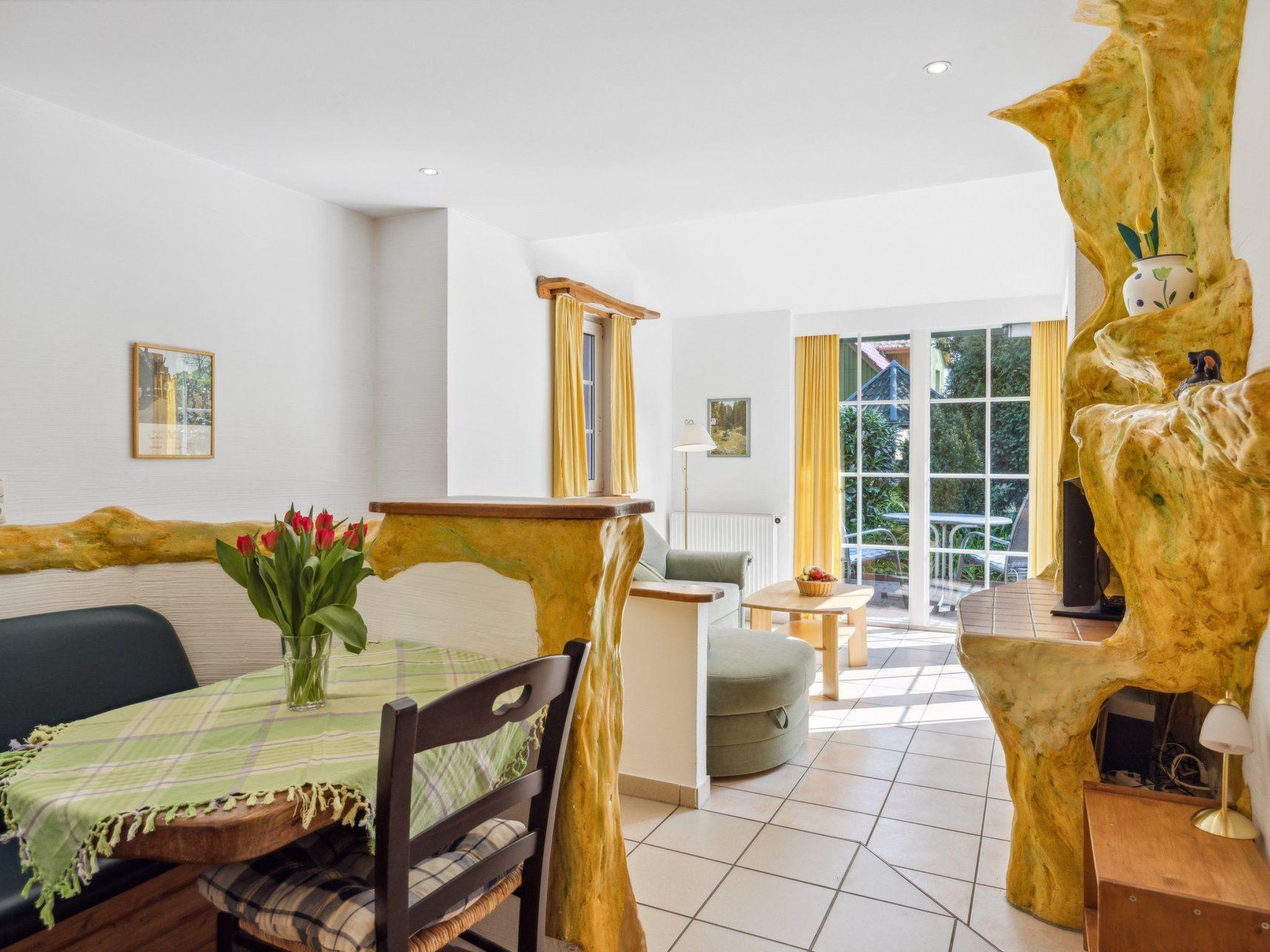 Im Inneren erwartet Sie ein liebevoll eingerichtetes Ambiente, das keine Wünsche offenlässt. Die Unterbringung umfasst ein Schlafzimmer mit einem komfortablen Doppelbett (1,80m x 2,00m), einen einladenden Wohnbereich mit Essplatz, Sat.-TV, Radio und CD-Player sowie eine voll ausgestattete Küchenzeile. Hier finden Sie alles, was Sie für die Zubereitung Ihrer Mahlzeiten benötigen, einschließlich Kühlschrank, Gefrierfach, Ceranfeld (2 Felder), Mikrowellengerät, Kaffeemaschine, Toaster und Wasserkocher. Komplettiert wird der Innenbereich durch ein modernes Badezimmer mit Dusche, Toilette und Waschbecken, sowie eine effiziente Gaszentralheizung und solargestütztes Warmwasser.