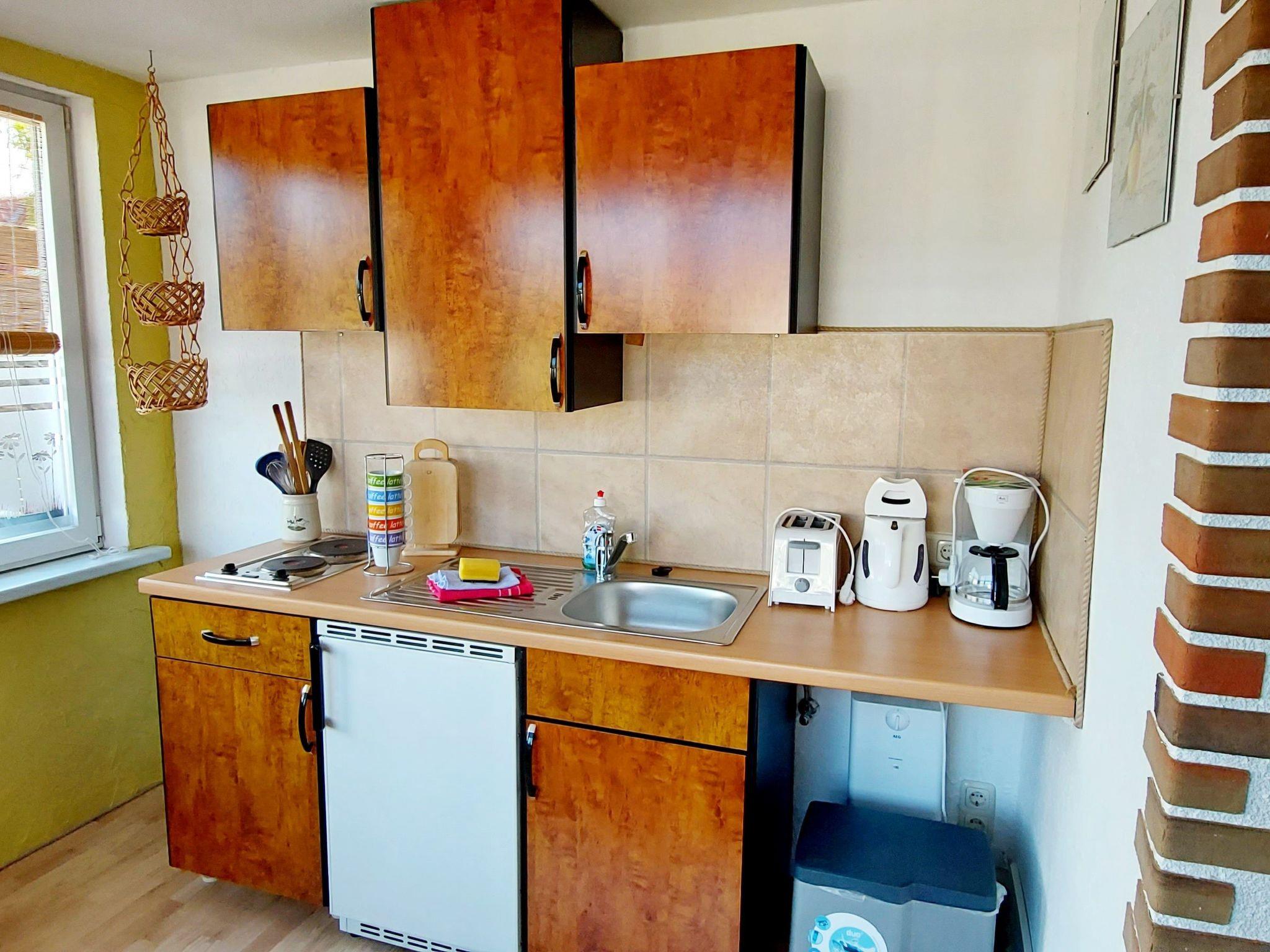 Die liebevoll eingerichtete Ferienwohnung erstreckt sich über zwei Ebenen und ist perfekt geeignet für bis zu 4 Personen. Im Obergeschoss finden sich zwei gemütliche Schlafzimmer, die aufgrund ihrer Bauweise eine etwas niedrige Decke aufweisen. Im Sinne der Selbstverpflegung ist die Wohnung mit einer Küche versehen. Gäste sollten jedoch beachten, dass die Treppe zum Obergeschoss steiler ist als üblich, was eine besondere Aufmerksamkeit erfordert. Ein Parkplatz direkt beim Haus fügt dem Ganzen eine bequeme Annehmlichkeit hinzu.