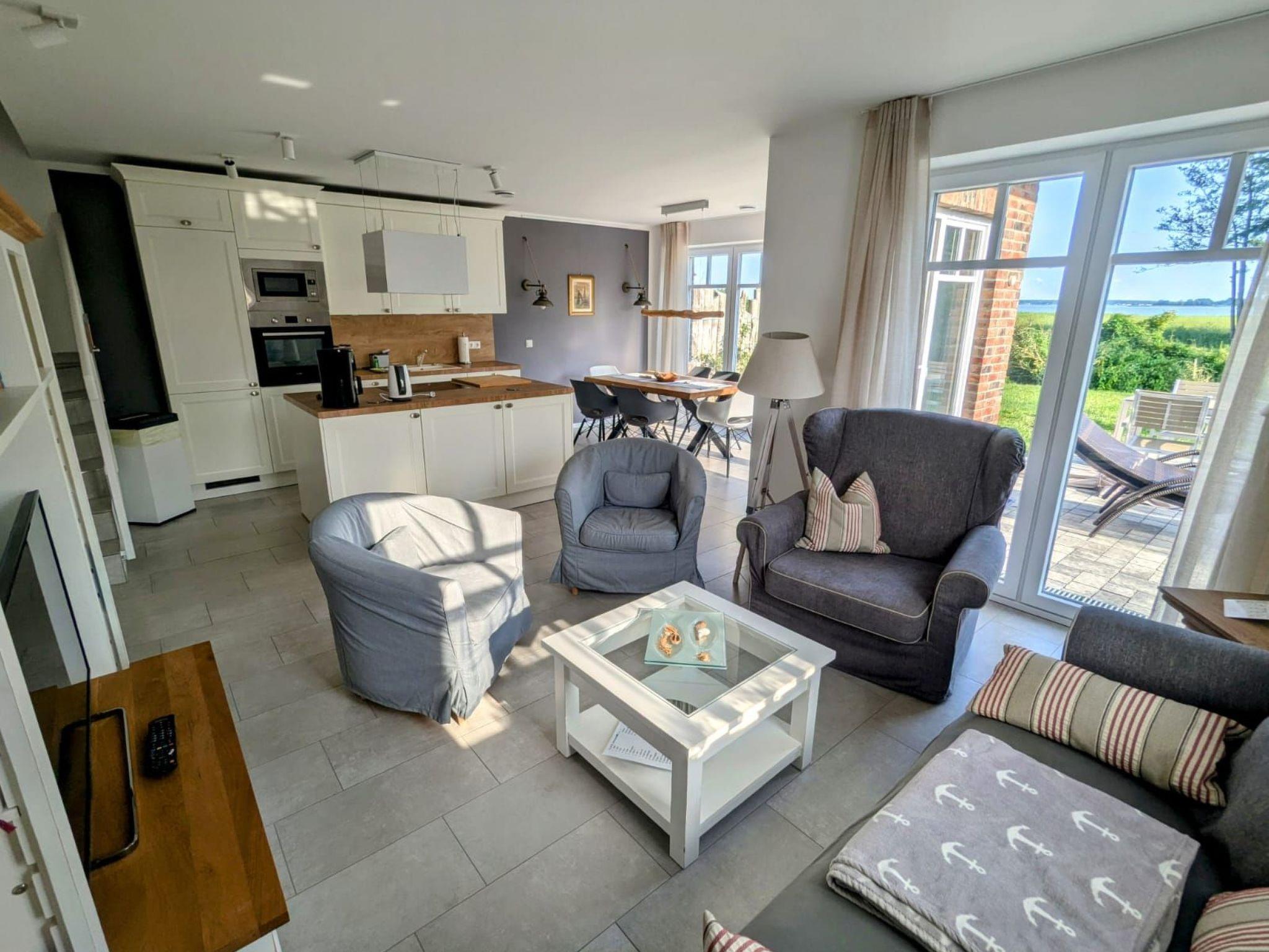 Gemütliche Doppelhaushälfte mit Boddenblick, Sauna und Terrasse nahe Wieck.