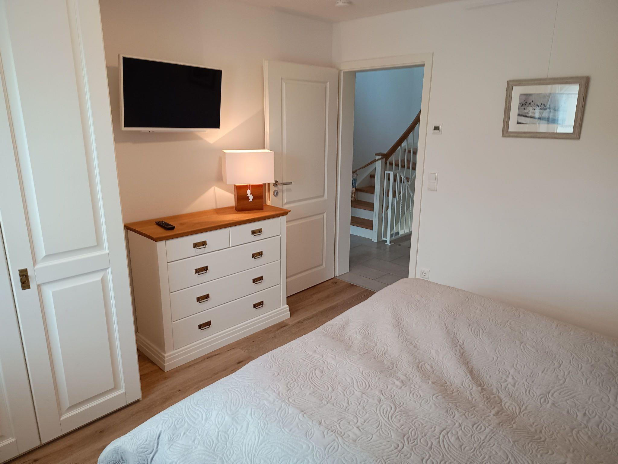 Das Ferienhaus Luv wurde zum Jahresende 2019 bezugsfertig. Lee und Luv sind die beiden Haushälften eines Doppelhauses, daher sind sie baugleich und auch gleich eingerichtet. Luv verfügt über eine Wohnfläche von 115qm, über 3 Schlafzimmer mit insgesamt 6 Betten und 2 Bädern. Die Einbauküche umfasst einen Küchenblock mit Kühl-Gefrierkombination, Backofen, Spülmaschine, Mikrowelle, Kaffeemaschine, Toaster etc. Eine Kochinsel mit vier Induktionskochfeldern und vielen Schubfächern für Vorräte usw. komplettiert die Küche. Im Wohnzimmer laden ein 3-sitziges Sofa, ein 1,5-sitziger Ohrensessel und zwei Cocktailsessel zum Verweilen ein. Das Ferienhaus wurde mit viel Liebe zum Detail eingerichtet - schließlich sollen Sie sich als Gast pudelwohl fühlen! Highlight ist der freie Blick auf die weiten Wasserflächen des Boddens, vom Esszimmer und dem Ruheraum im Obergeschoß. Nach langen Ausflügen können Sie den Tag in kuscheliger Wärme der Sauna und im Ruheraum ausklingen lassen. Der Blick auf den Bodden und in die Natur wirkt beruhigend. Er lässt Sie den Alltagsstress vergessen. Sie können dort auch in harmonischer Zweisamkeit Pläne für den nächsten Tag schmieden. Die Nutzung der Sauna können Sie über ein Münzgerät aktivieren.30 Minuten kostet eine Zwei-E u r o-Münze. Für den Betrieb des Saunaofens benötigen Sie zwei E u r o Münzen. Sie erreichen nach 30-minütigem Betrieb des Saunaofens eine Temperatur von ca. 45 Grad, die im Laufe der nächsten 30 Minuten auf ca. 65 Grad steigt. Manche Saunagänger mögen diese Temperatur für zu gering erachten. Wir halten sie für ausreichend und haben mehr Wert gelegt auf eine komfortable Größe der Sauna und einen Ruheraum mit toller Aussicht. Wir bitten unsere Gäste eigene Saunatücher und Bademäntel mitzubringen. Diese - und auch andere Wäscheteile - können Sie in der Waschmaschine waschen, anschließend auf dem Wäscheständer aufhängen und trocknen lassen.