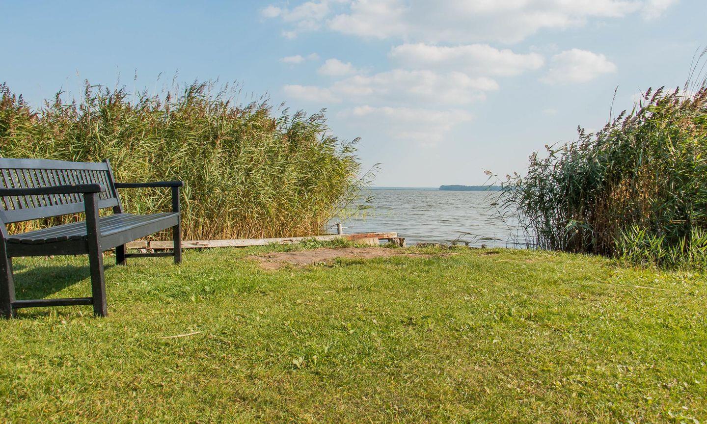Im Erdgeschoss befindet sich der Wohnraum mit gemütlicher Sitzecke und Kaminofen. Eine kleine Terrasse mit Gartenmöbeln ist am Wohnbereich angeschlossen. Die separate Küche mit einem großzügigen Essbereich, ein Gäste-WC sowie eine weitere Terrasse mit Austritt in den Garten runden das Erdgeschoss ab. Das Dachgeschoss verfügt über zwei Schlafzimmer, die jeweils mit einem Doppelbett ausgestattet sind sowie einem zusätzlichen Bad mit Dusche/WC. Vom Obergeschoss genießt du einen wunderbaren Ausblick auf den Bodden.