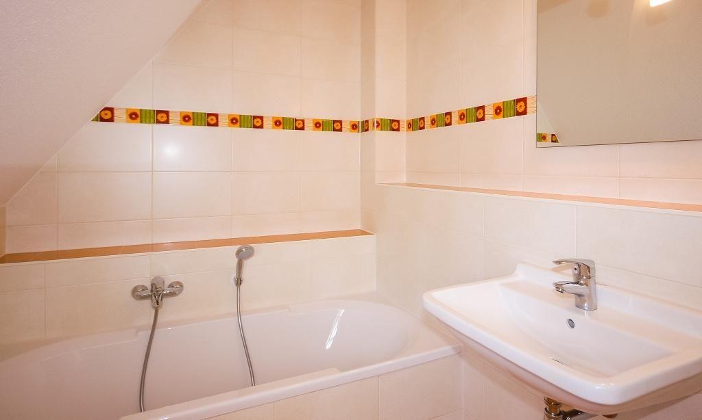 Im Wohnraum erwartet dich eine gemütliche Sitzecke am Kaminofen sowie die offene Küche mit Essbereich. Das Bad mit Dusche/WC und ein Abstellraum befinden sich angrenzend. Über die Terrasse gelangst du direkt in den abgeschlossenen Garten, der zum Verweilen einlädt. Das Obergeschoss beherbergt zwei Schlafzimmer, die jeweils mit Doppelbetten ausgestattet sind. Weiterhin findet ein Bad mit Wanne/WC in der oberen Etage Platz.