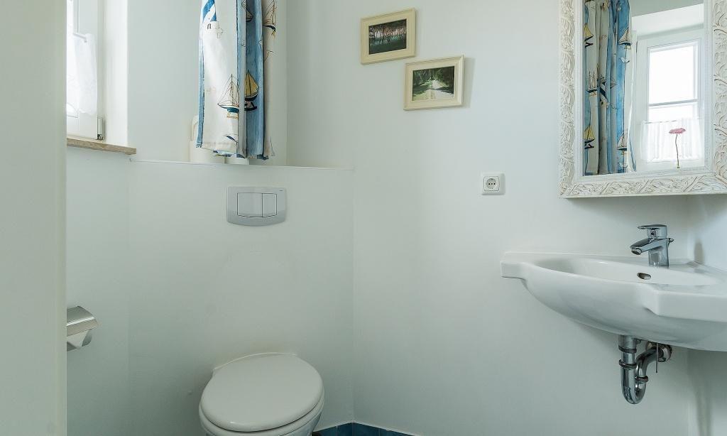 Die Maisonette-Wohnung ist mit individueller, zeitgemäßer und maritimer Wohnlichkeit ausgestattet und strahlt viel Gemütlichkeit aus. Im Erdgeschoss erwartet dich der liebevoll eingerichtete Wohnraum mit TV und DVD- und CD-Player und einem Kaminofen, der für kuschelige Wärme sorgt. Mit im Raum integriert ist die offen gestaltete Küche. Dank der komfortablen Ausstattung mit Geschirrspüler, Ceranherd, Backofen und Mikrowelle lässt diese keine Wünsche offen und lädt zum geselligen Kochen ein. Ein Gäste-WC befindet sich ebenfalls im Erdgeschoss. Die beiden hellen und freundlich eingerichteten Schlafzimmer liegen im Obergeschoss und sind mit einem Doppelbett und einem Kojenbett (für ein bis zwei Personen) ausgestattet. Hier befindet sich auch das Hauptbadezimmer mit Dusche/WC.