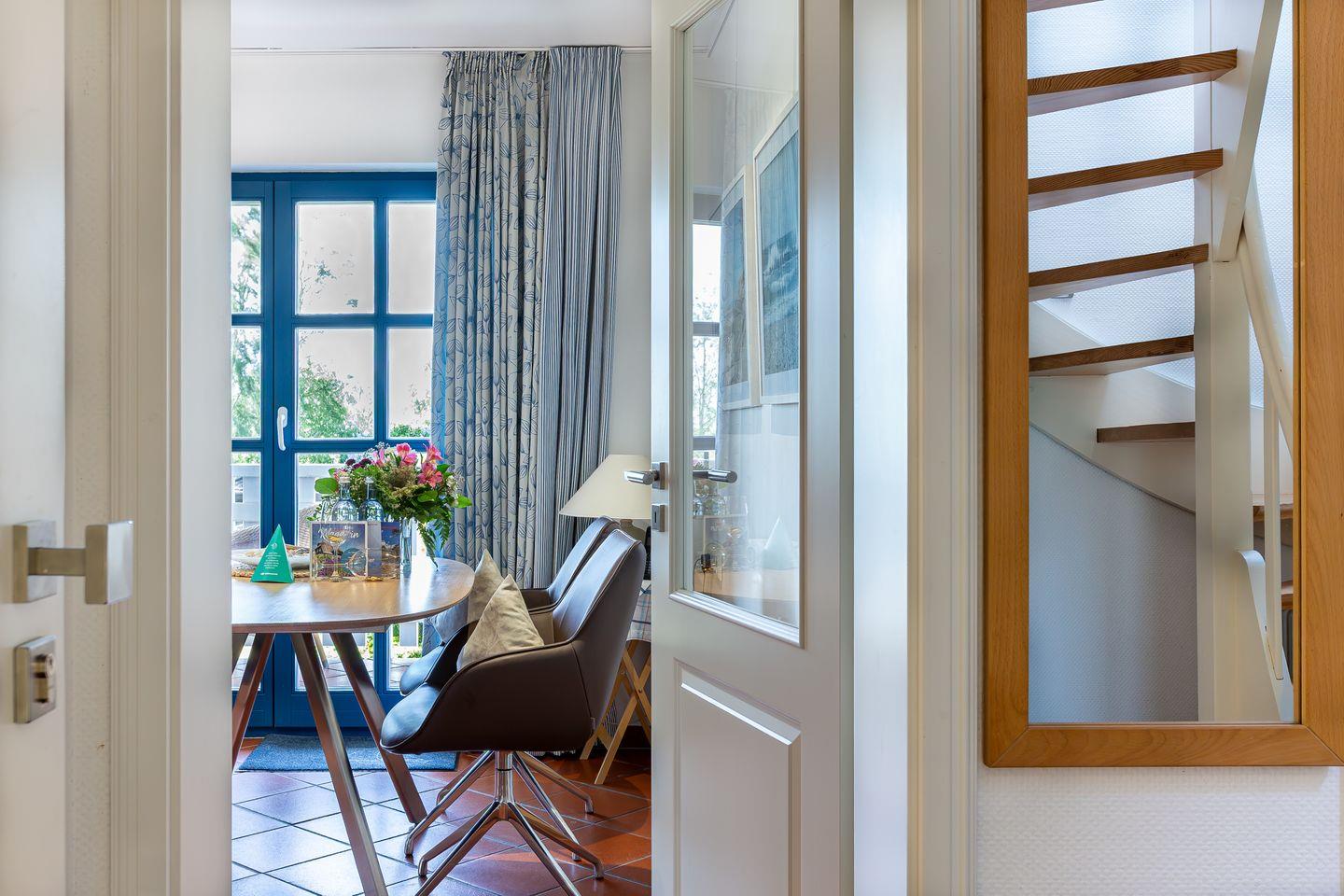 Luxuriöse Maisonette-Ferienwohnung "Boddenstern" in ruhiger Lage mit Balkon, eigenem Garten und Boddenblick am Naturschutzgebiet Born.