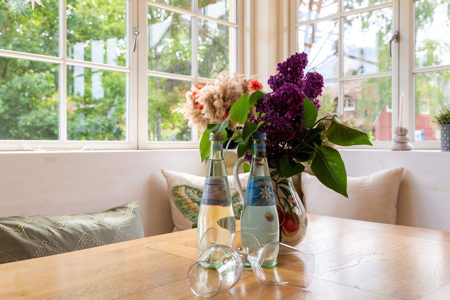 Im Außenbereich erwartet dich ein besonders schöner Garten, der teils modern mit Steinen und Pflanzen und teils wild angelegt ist. Auf der Terrasse kannst du bei einem sonnigen Frühstück in den Tag starten oder diesen bei einem Glas Wein gemütlich ausklingen lassen. Horrido ist ein bezauberndes Ferienhaus, dass sich ganz und gar der Natur und Umgebung anpasst und dir garantiert einen traumhaften Urlaub ermöglicht.
