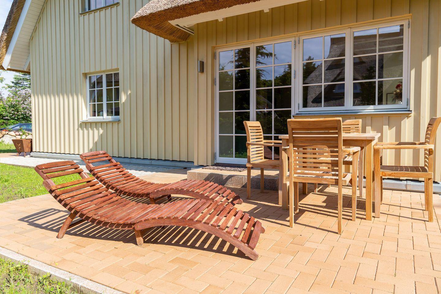 Modernes Ferienhaus Horrido in Born am Darß mit Sauna, Kamin und idyllischem Garten für erholsame Urlaubstage.