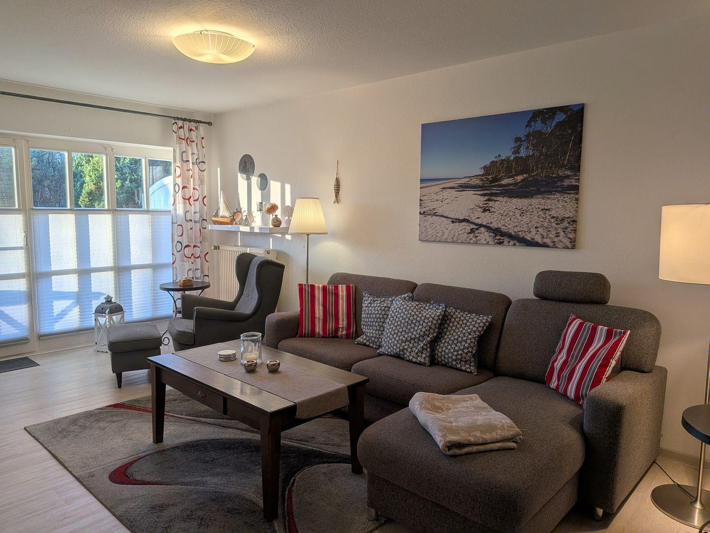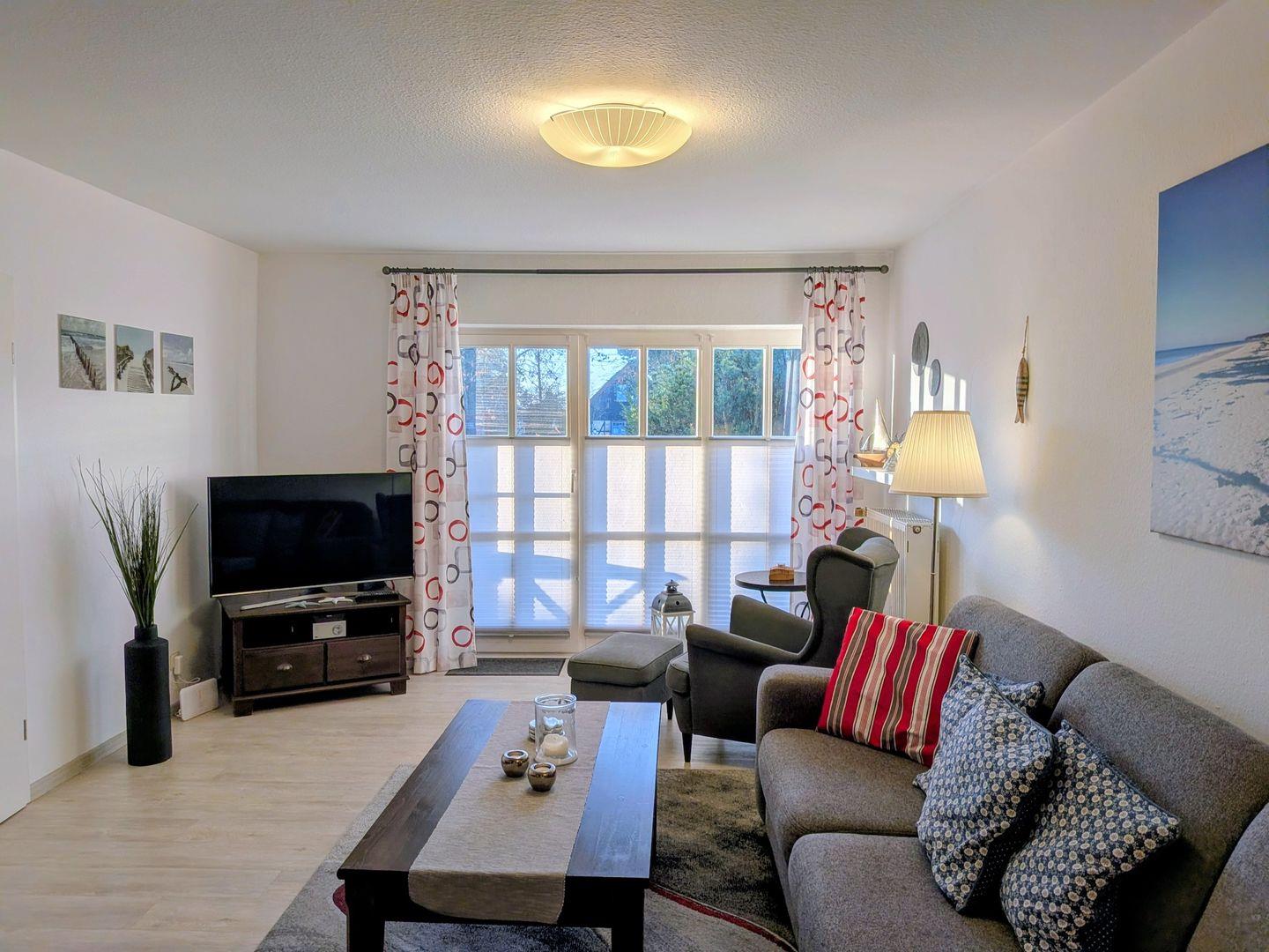 Moderne Ferienwohnung Freibeuter mit Terrasse, Gartenblick und WLAN in Born – ideal für erholsame Tage zu zweit.