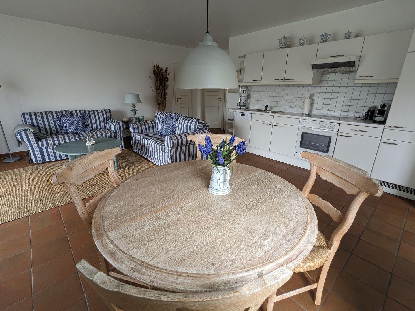 Entdecken Sie die charmante Ferienwohnung "Am Boddenweg - Sunddriewer" im ländlichen Born. Diese großzügige 77 m² große Wohnung bietet Platz für bis zu zwei Personen und beeindruckt mit modernem Komfort, darunter eine offene Küche mit Cerankochfeld und Geschirrspüler. Entspannen Sie im gemütlichen Wohnzimmer oder auf der Terrasse mit Gartenblick. WLAN, eine Waschmaschine und ein privater Parkplatz sind ebenfalls vorhanden. Genießen Sie die ruhige Umgebung und die Nähe zu Einkaufsmöglichkeiten. Buchen Sie jetzt Ihren erholsamen Aufenthalt!