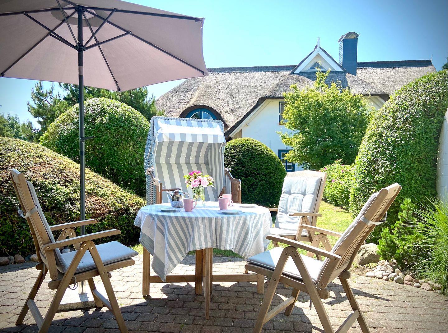 großzügige und neu renovierte Bad. Ein ausgiebiges Frühstück auf der Terrasse im Grünen macht den Start in den Tag perfekt. Im Anschluss lädt der Boddenbadestrand vor der Haustür zum verweilen ein. Oder Sie starten eine Radtour durch den Darßer Urwald zum Weststrand...