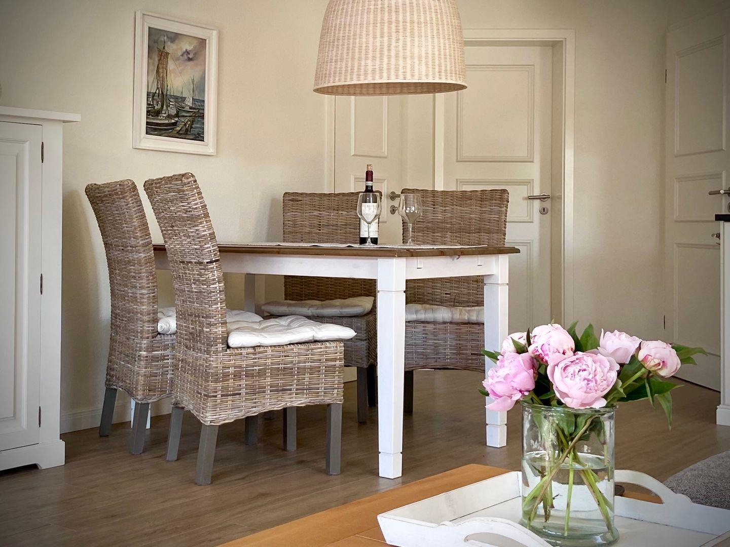 Ferienwohnung Dwarslöper - eine Strandkrabbe gab dieser elegant eingerichteten Ferienwohnung ihren Namen. Das sonnendurchflutete Wohn- und Esszimmer überzeugt genau so wie das