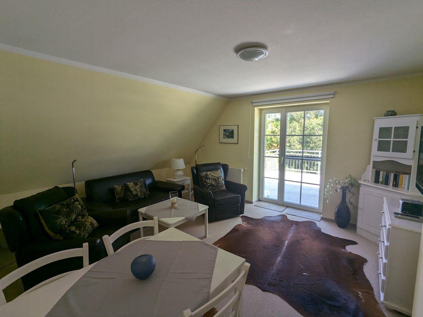 Die Ferienwohnung liegt in einer ruhigen Seitenstraßen in einer exklusiven, reetgedeckten Villa im Landhausstil mit großer Terrasse. Sie besticht zu jeder Jahreszeit durch einen bemerkenswerten Boddenblick sowie einem direktem Boddenzugang. Erleben Sie den Darß von seiner schönsten Seite. Im Anbau befindet sich eine Gemeinschaftssauna ( Münzautomat), die an kalten Tagen für Entspannung sorgt. Näher kann man dem Bodden nicht sein!