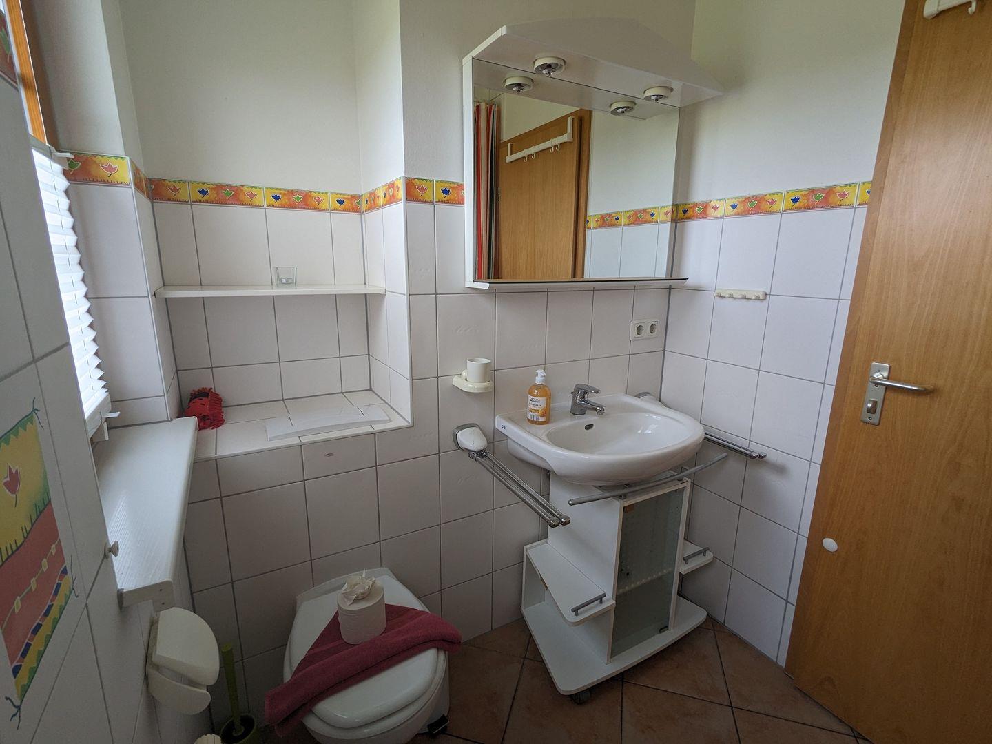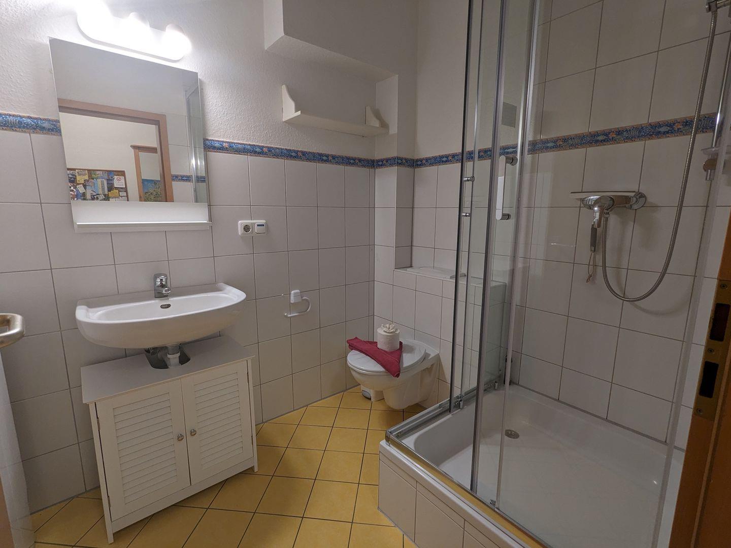 Zu weiteren Annehmlichkeiten gehören zwei Badezimmer – eines mit Dusche und Badewanne, das andere als separates WC – sowie praktische Ausstattungen wie Waschmaschine, Wasserkocher und Kaffeemaschine. Ihr Fahrzeug parken Sie bequem auf einem der zwei Privatparkplätze.