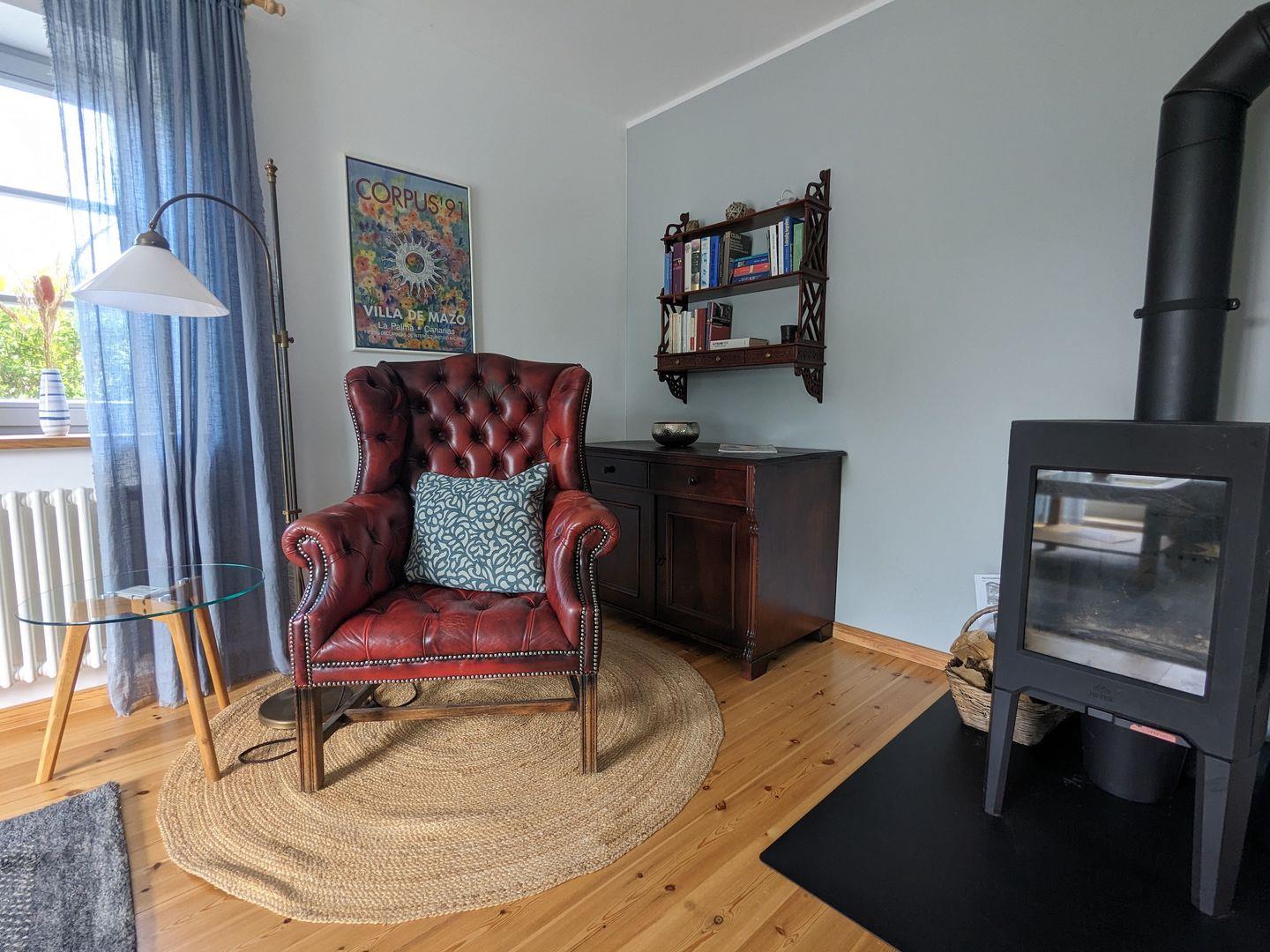 Charmante Erdgeschosswohnung mit Kamin, Garten und WLAN in Born, ideal für entspannte Tage.