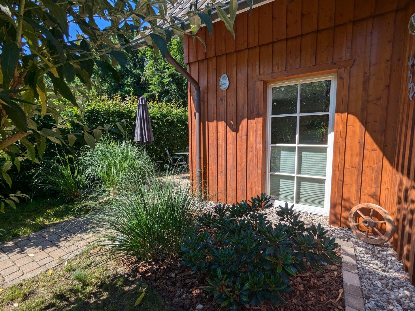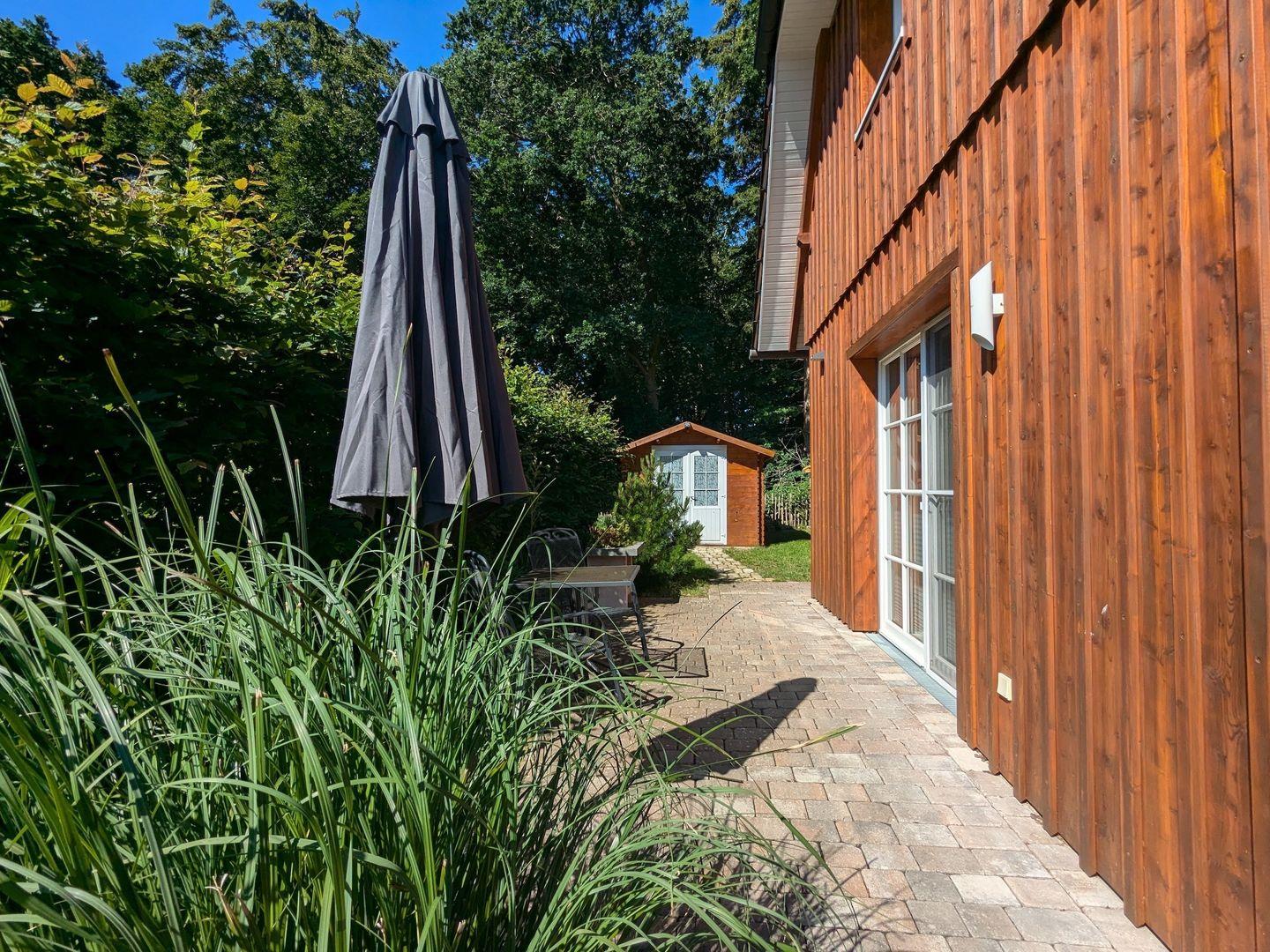 Gemütliche Haushälfte "Am Wald" in Born mit Kamin, Terrasse und eigenem Garten für erholsame Urlaubstage.