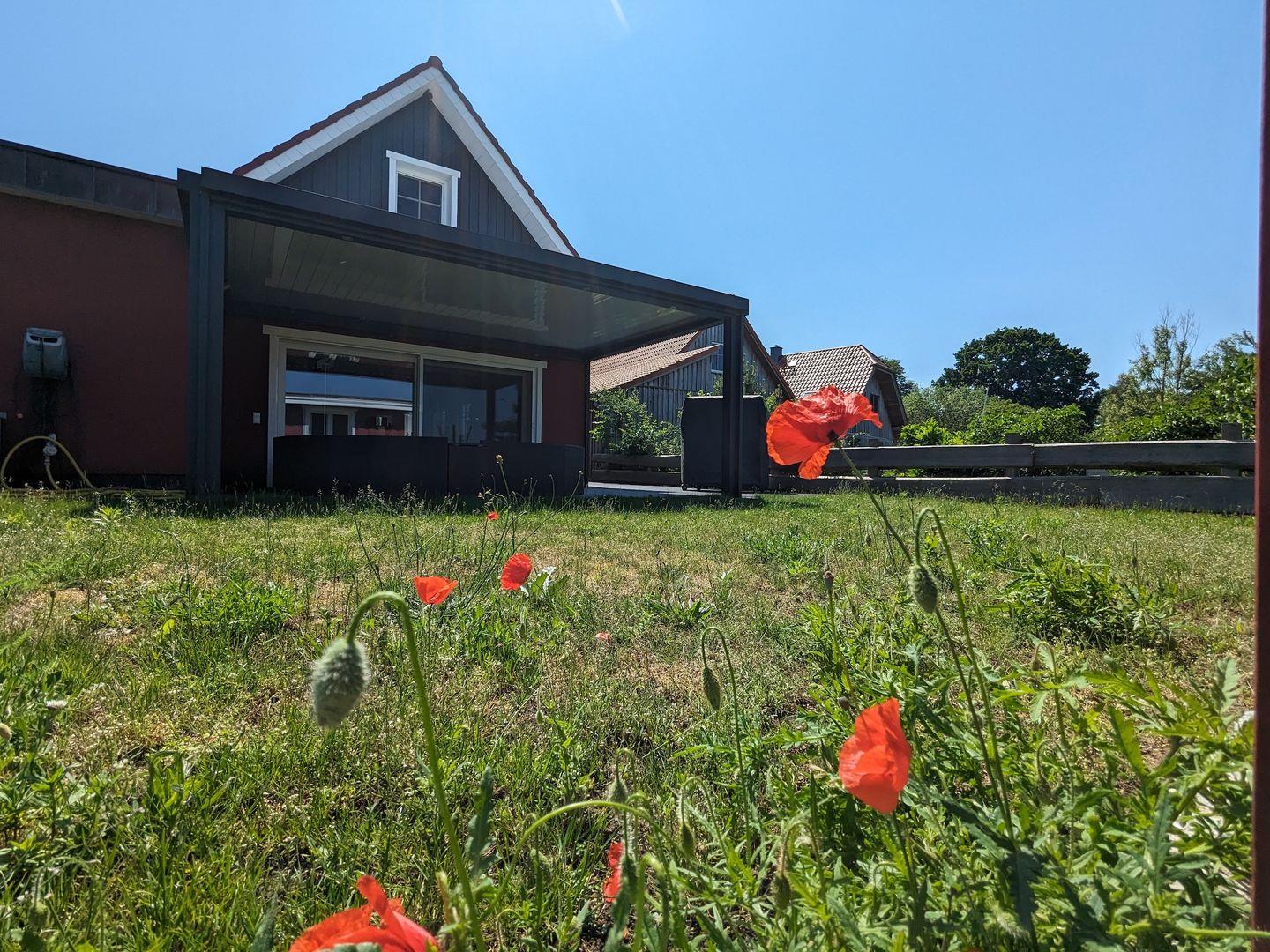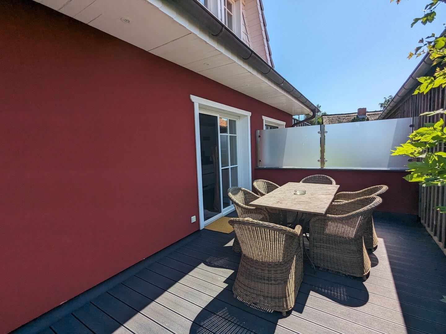 Erleben Sie Urlaub mit der ganzen Familie in diesem 2019 erbauten modernen Ferienhaus, das ruhig an einer Pferdekoppel gelegen ist. Am und um´s Haus finden Sie immer, der Windrichtung entsprechend, eine geschützte Ecke zum Sitzen. Die überdachte Hauptterrasse kann der Mittelpunkt gemütlicher Abende werden. Ein großer Strandkorb und eine große Sitzlounge bietet Platz für alle Gäste. Wer sich zurückziehen möchte, nimmt ein Sonnenbad auf den sichtgeschützen und zum Süden ausgerichteten Balkon.Das Haus liegt zudem fußläufig zum Reiterhof und zum Erlebnishof Gut Darß - für abwechslungsreiche Unternehmungen für Groß und Klein.