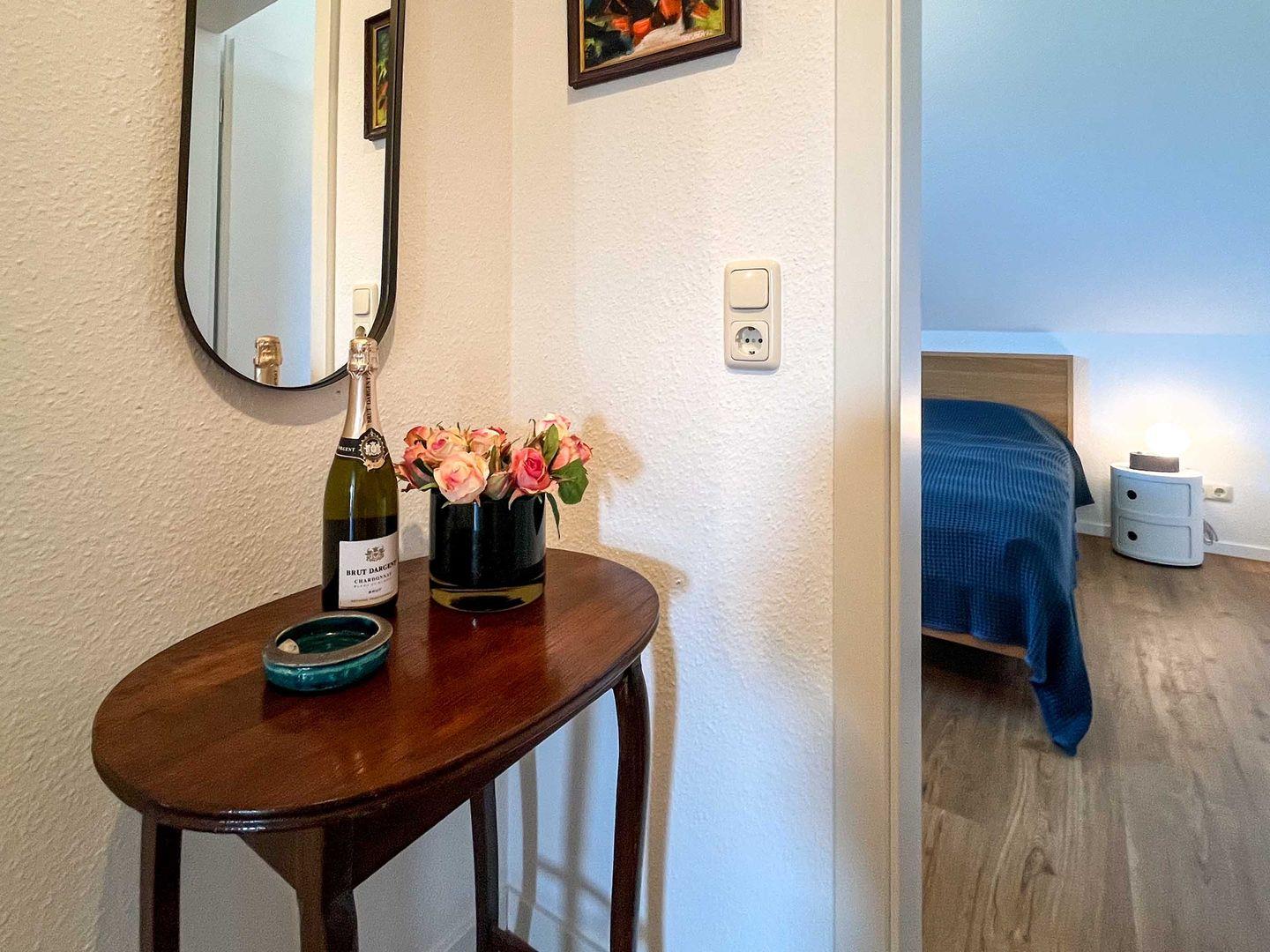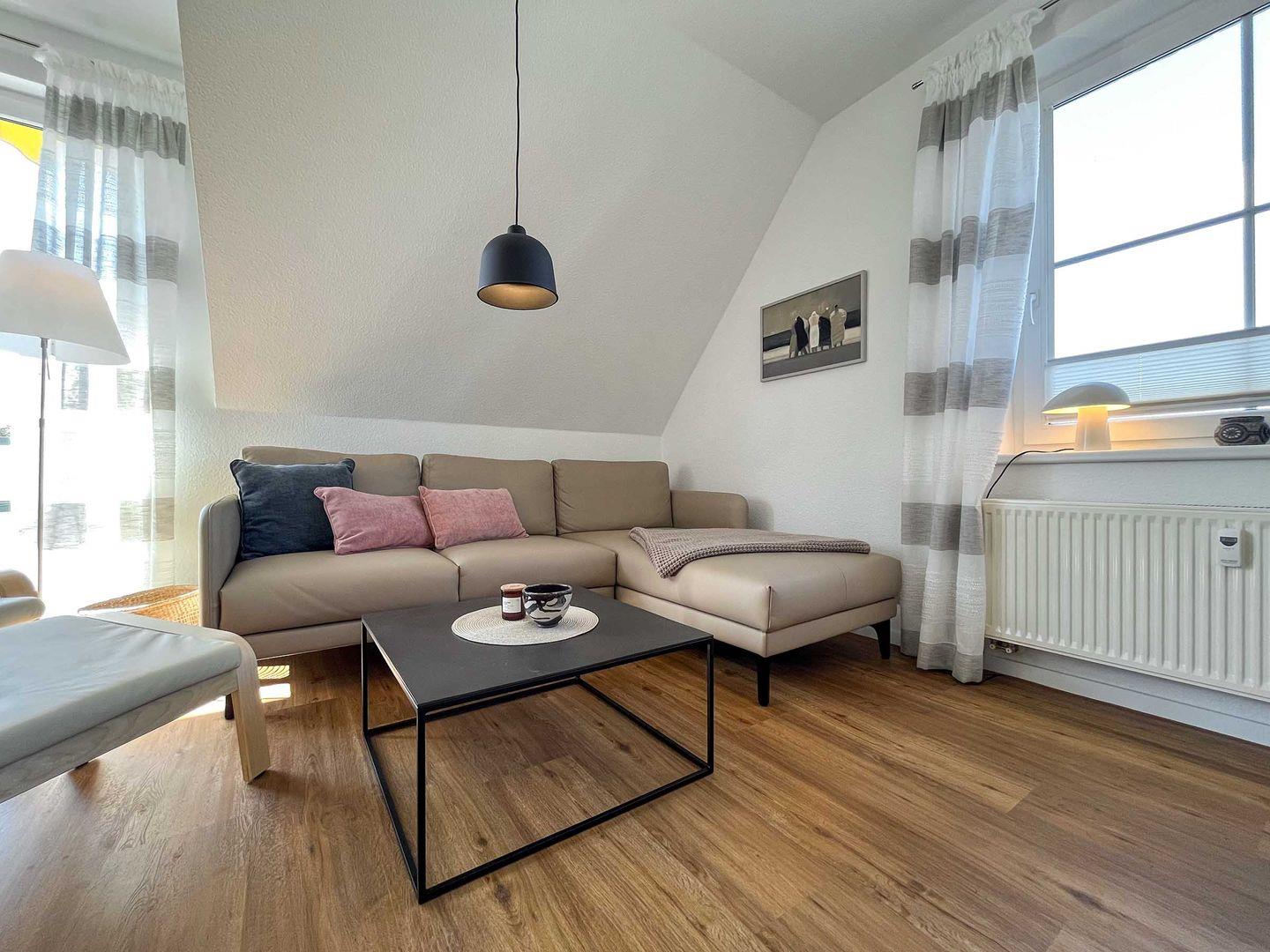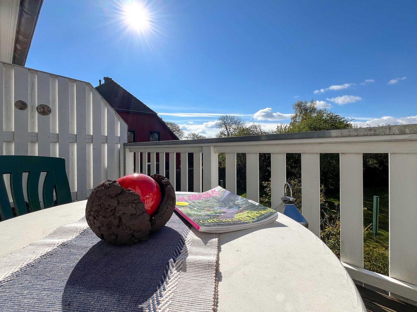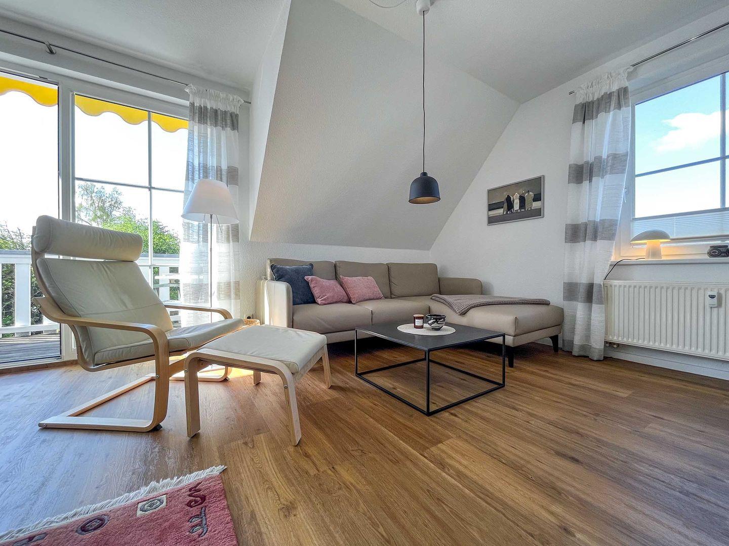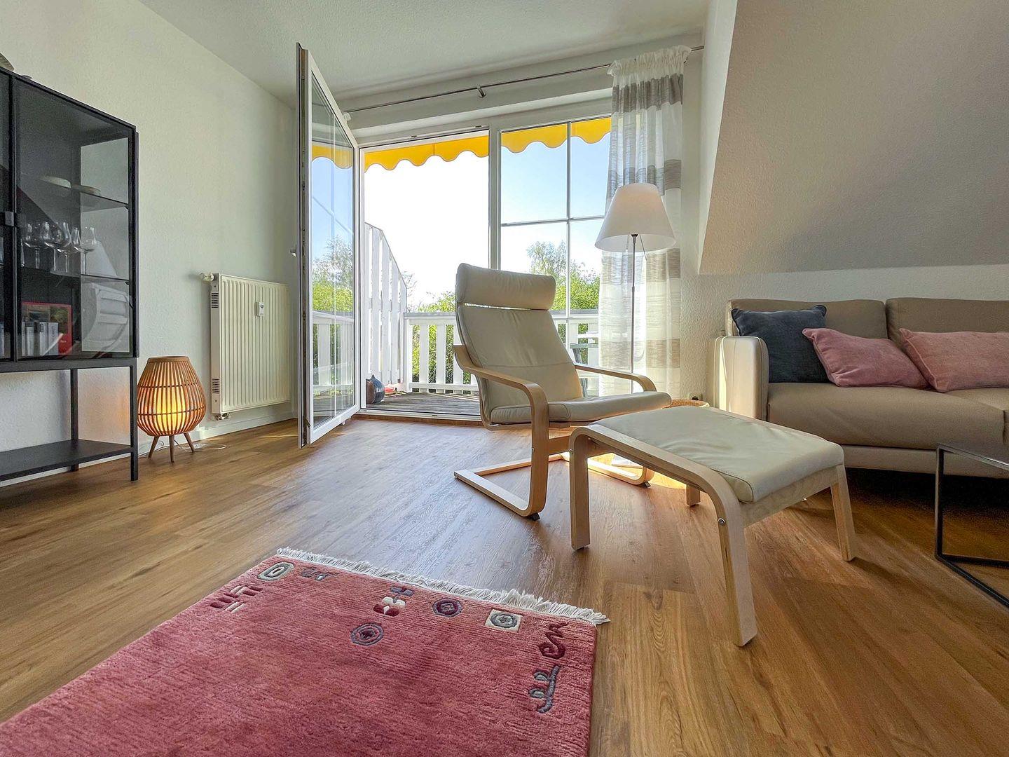 Entspannen Sie im gemütlichen "Sonnenglück" in Born mit Balkon und voll ausgestatteter Küche, ideal für erholsame Tage zu zweit.